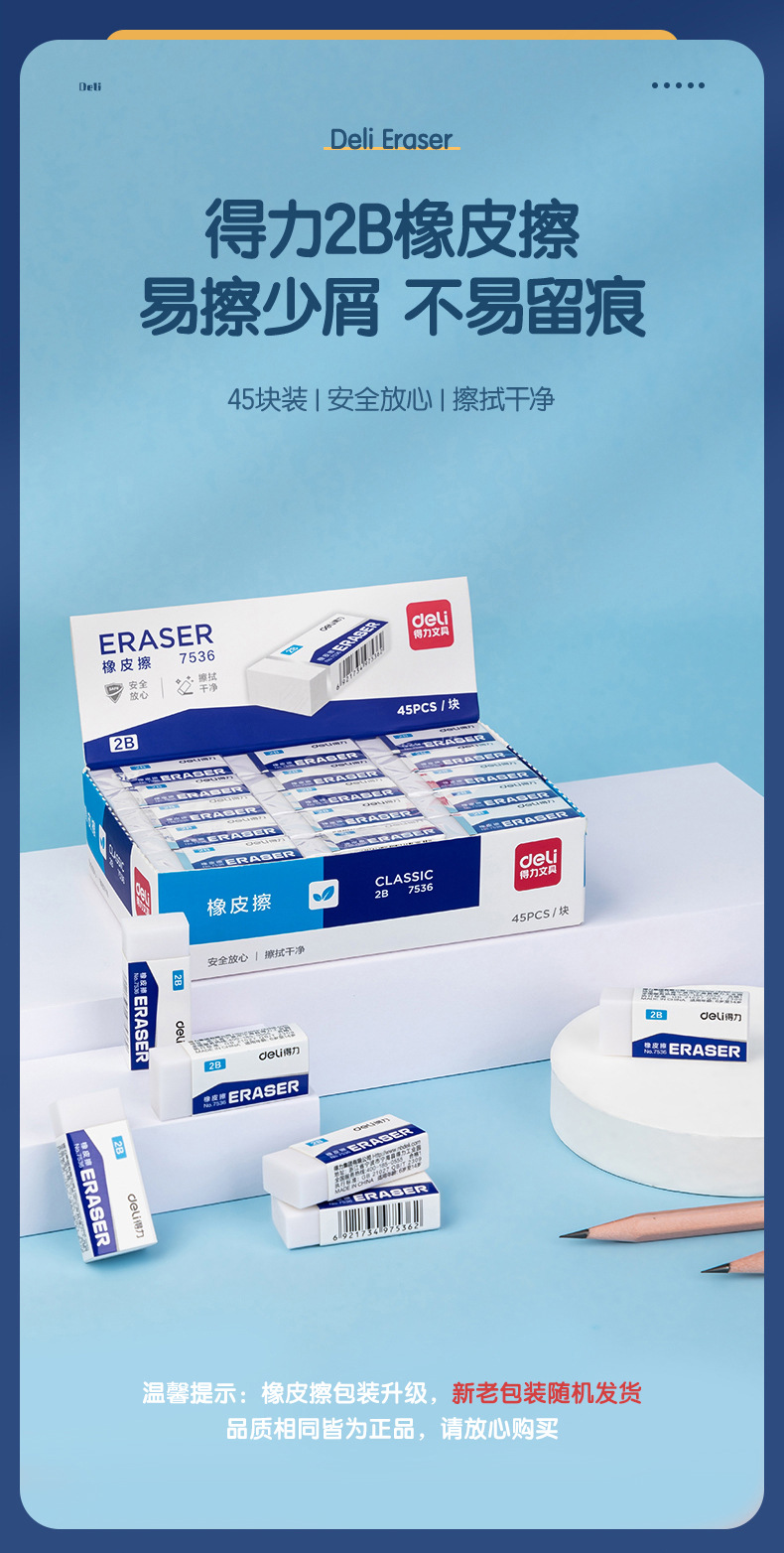 델리 지우개 7536 고등학교 입학 시험 지우개 2B 초등학생 답변 카드 시험 연필 지우개 문구스토어 가기