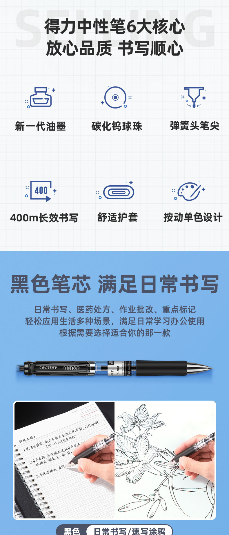 젤 펜 프레스 0.5 중성 물 펜 시그니처 펜 델리 델리 33388 사무용품 학생 문구 도매