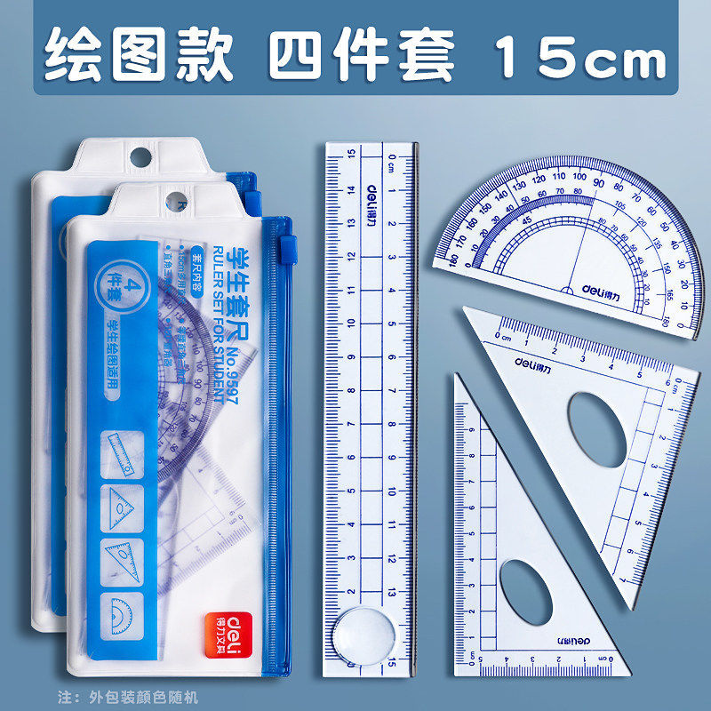 델리 눈금자 델리 학생 눈금자/삼각형 플레이트/각도기가 포함 된 만화 4 피스 세트스토어 가기