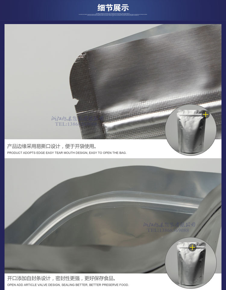 차 포장 밀봉 자체 밀봉 알루미늄 호일 가방 재고 비스킷 과일 간식 식품 포장 가방 자체 서 물고기 미끼 지퍼 가방