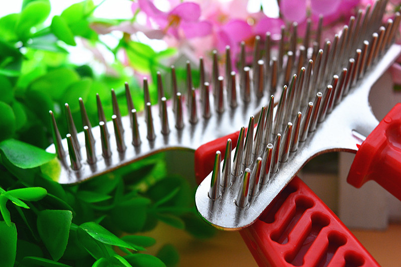 ·钢耙梳,齿较大 用来梳理长毛、厚毛狗狗