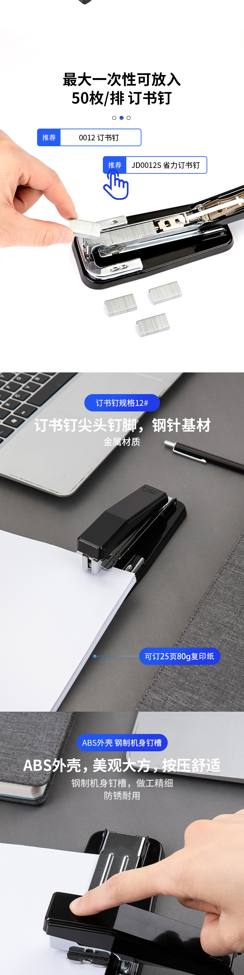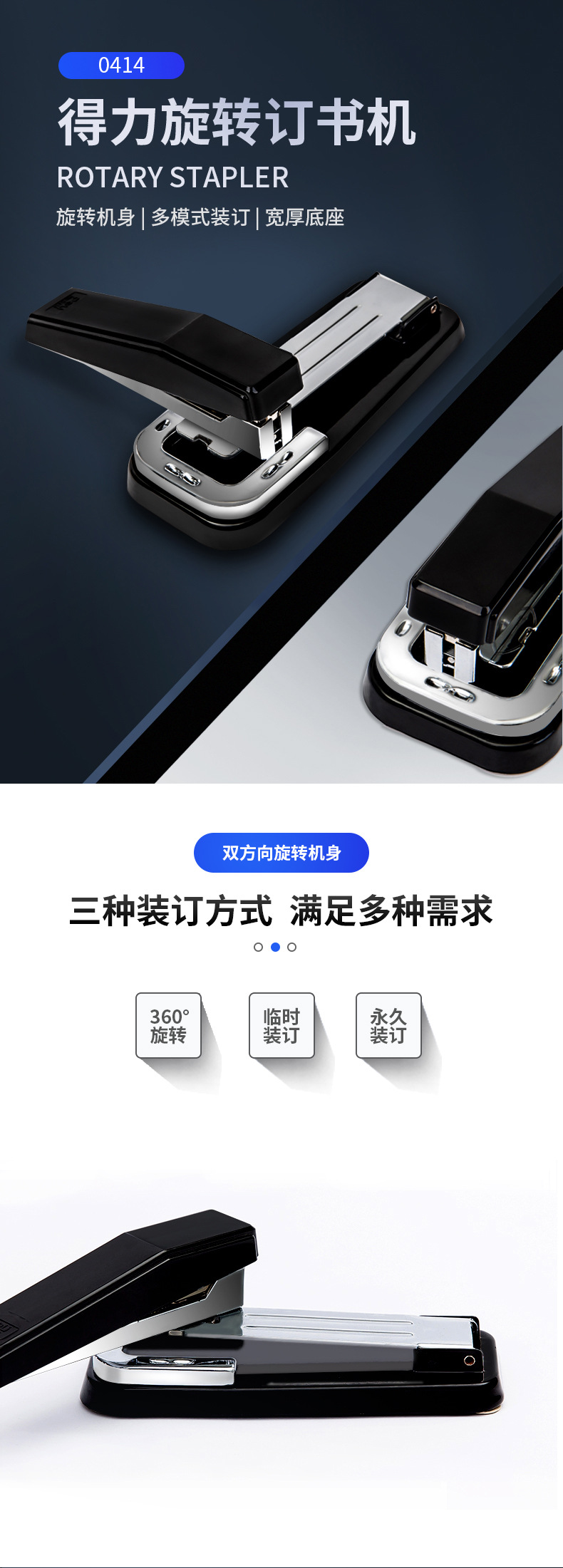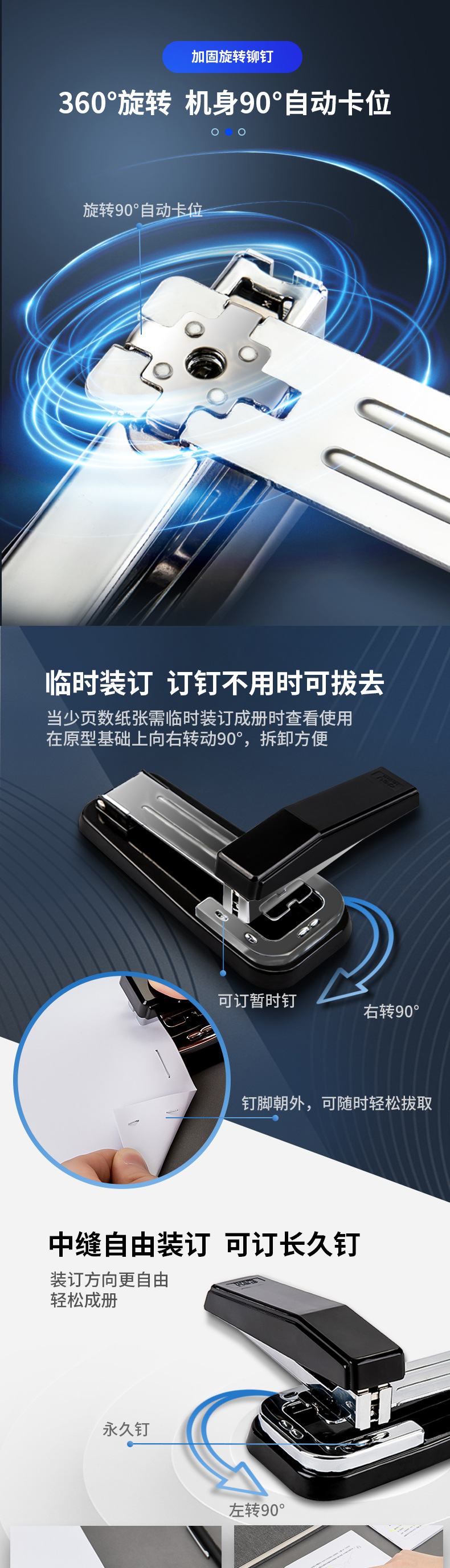 델리 스테이플러 도매 360 ° 회전 대형 스테이플러 스티칭 안장 스티칭 기계 책 고정 기계