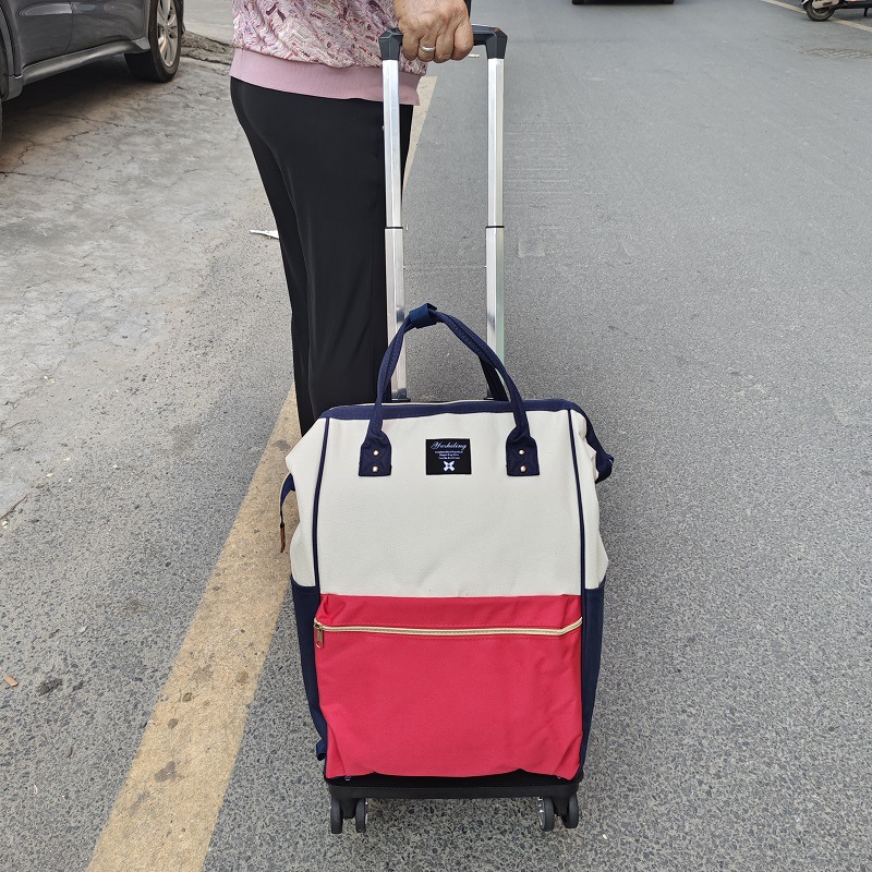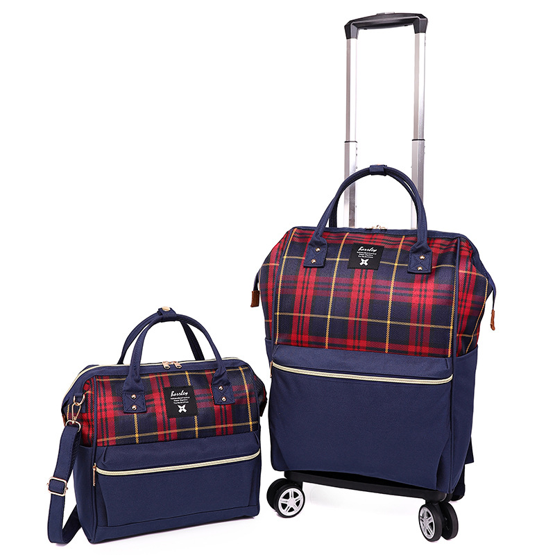 범용 휠이 달린 짧은 여행용 패셔너블한 여행 가방, 방수, 대용량, 뒤에서 당기는 이중 용도, 접이식 트롤리 백팩스토어 가기