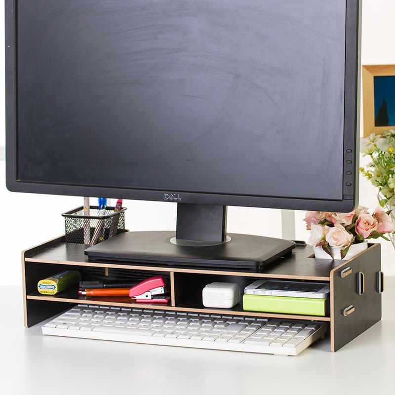 나무 LCD 디스플레이 상승 랙 키보드 랙 데스크탑 스토리지 랙 스토리지 랙스토어 가기