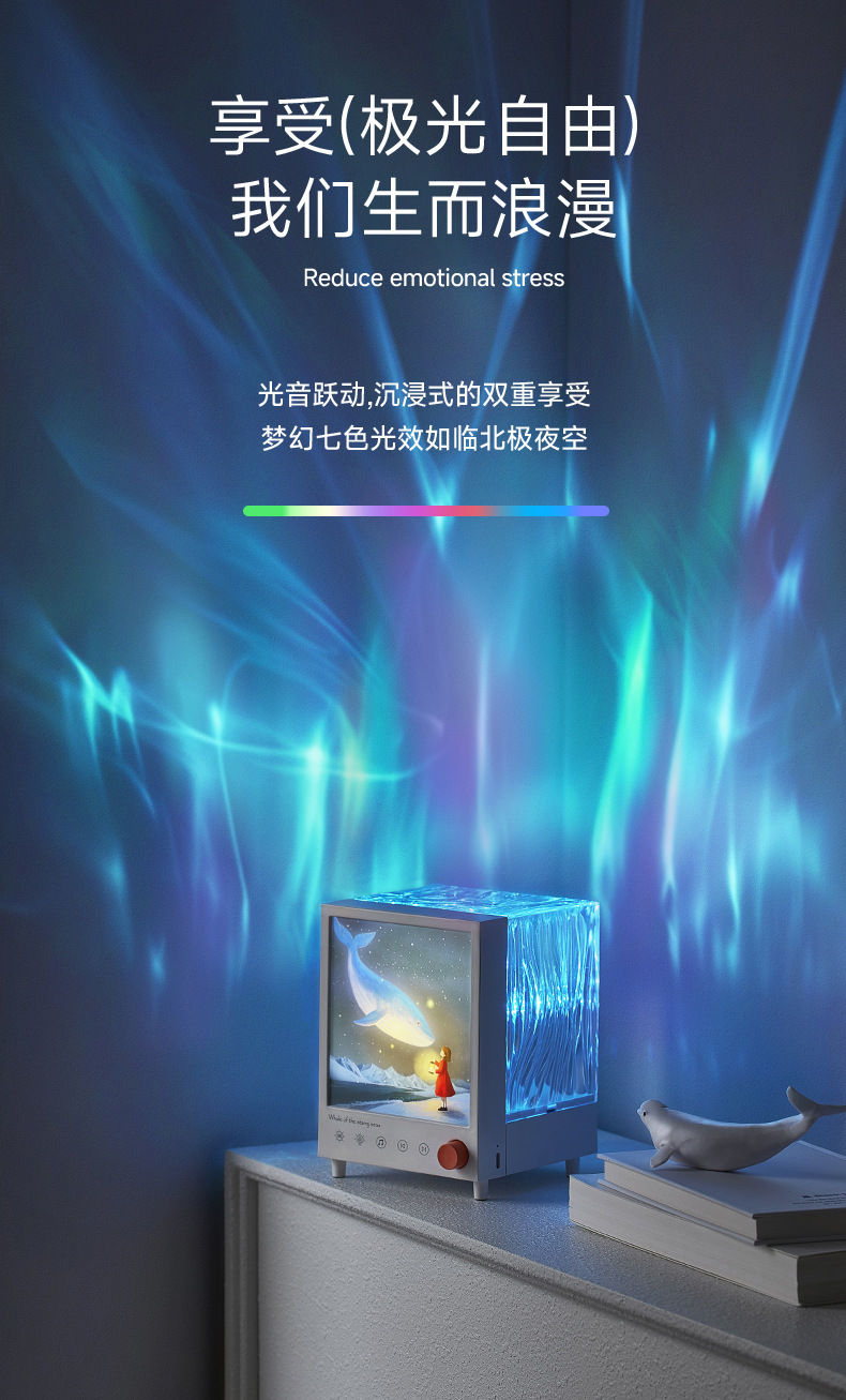 ②灯光模式切换键③投影颜色、亮度切换键④极光投影灯 ⑤音乐模式切换键➅播放切换键