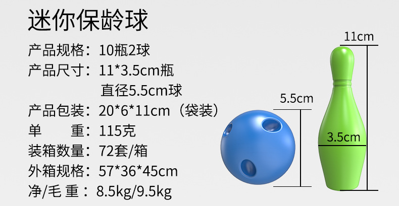 • 다채로운 볼링 핀 20cm 높이 (10 병 & 2 공) 박스