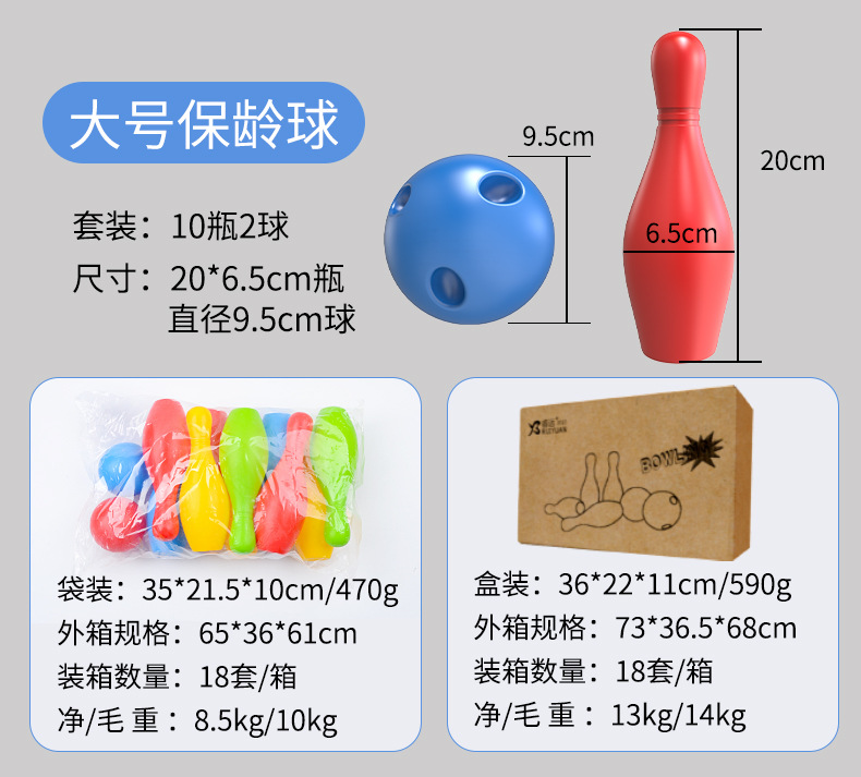 Ruiyuan 볼링 장난감 어린이 대화 형 엔터테인먼트 스포츠 실내 던지기 대형 PE 플라스틱 세트 볼링 공