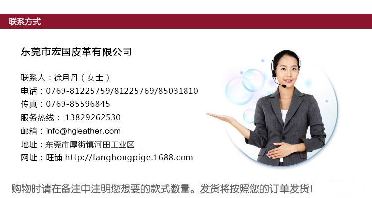 公司一直秉承诚信、向上、创新的发展理念,坚持以客为尊、服务至上的经营宗旨,争创皮革潮流环保先锋。热忱欢迎海内外客商前来恰谈(Email:info@hgleather.com)。