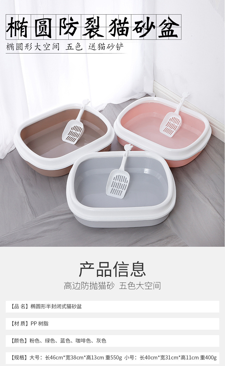 반밀폐형 고양이 화장실, 높은 가장자리, 물 튀김 방지, 타원형 고양이 화장실, 새끼 고양이 개방형 고양이 화장실, 도매 재고 있음스토어 가기