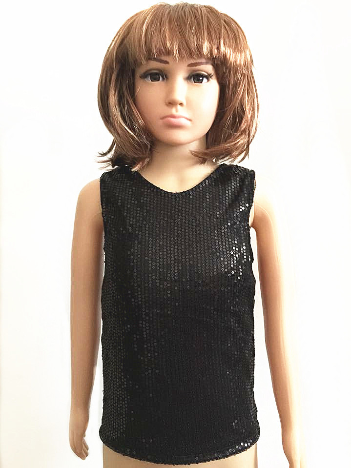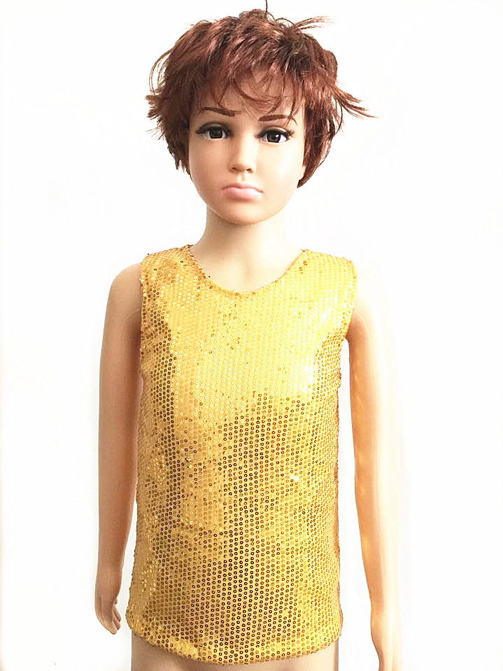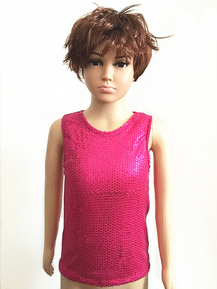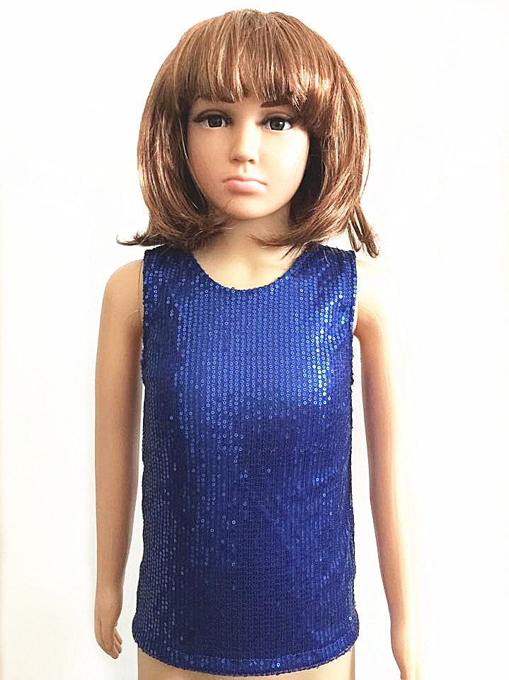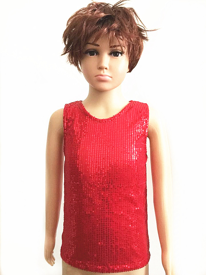 61 중소 소년 소녀 어린이 공연 의류 양면 스팽글 라운드 넥 민소매 스트레치 캐미솔 6 색스토어 가기