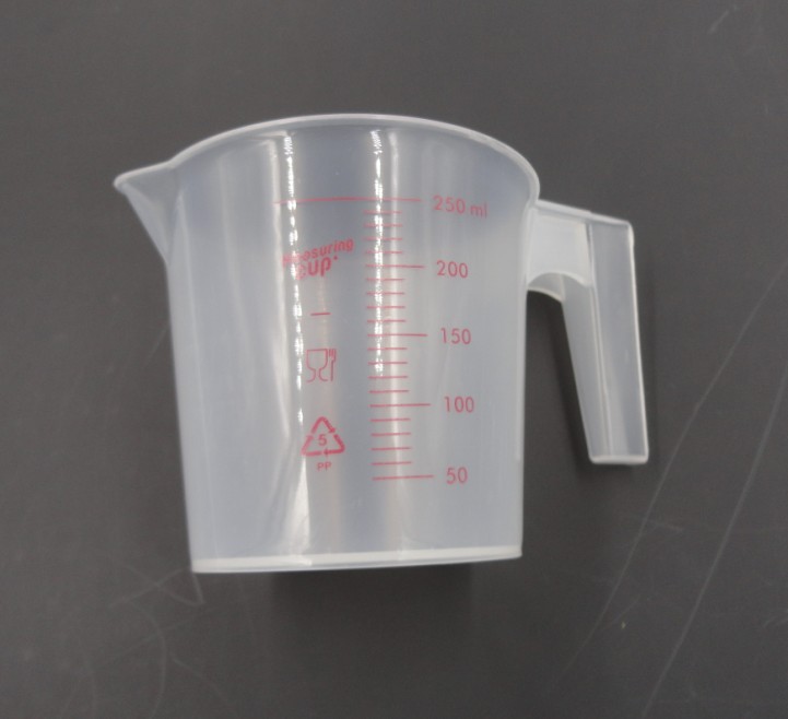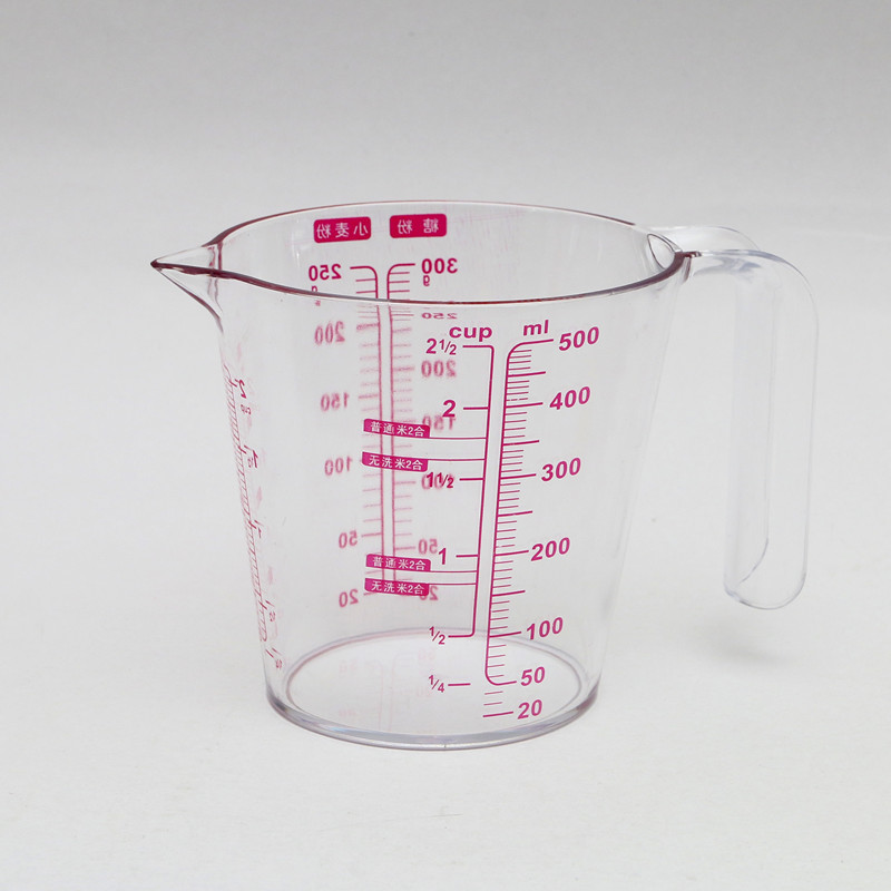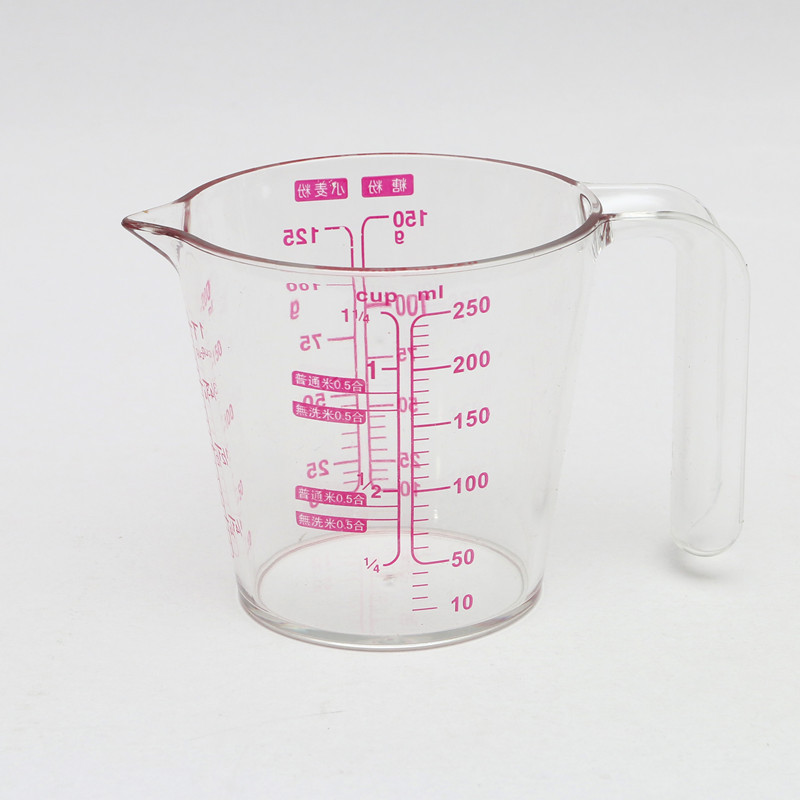 주방 가정용 베이킹 도구 PS 수지 측정 컵 플라스틱 미터 손잡이가있는 3 개의 저울 250ml500ml