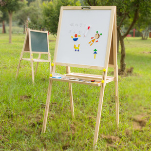 环保实木 儿童双面画板画架套装小黑板支架式宝宝画画写字板 65cm