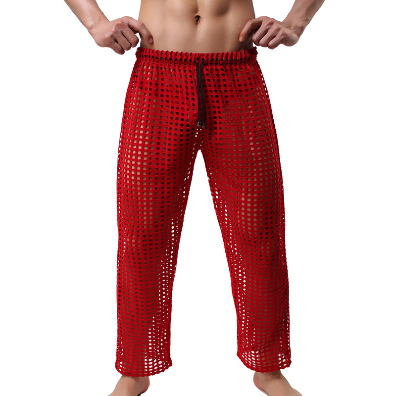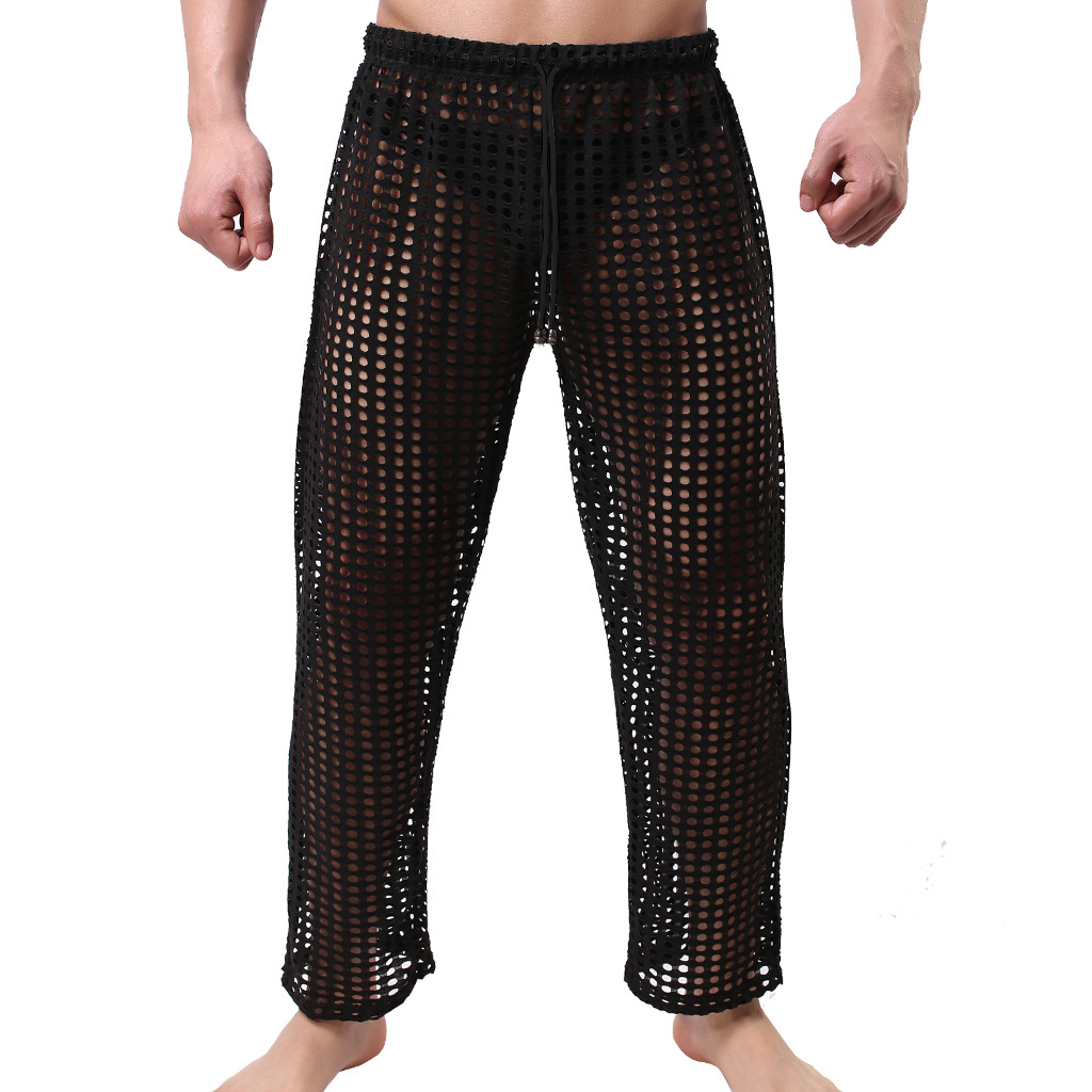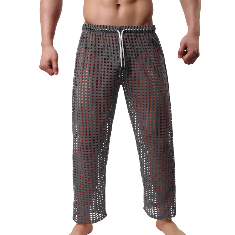 중공 바지 새로운 패션 남자의 섹시한 메쉬 바지 남자의 캐주얼 재미 중공 바지 도매스토어 가기