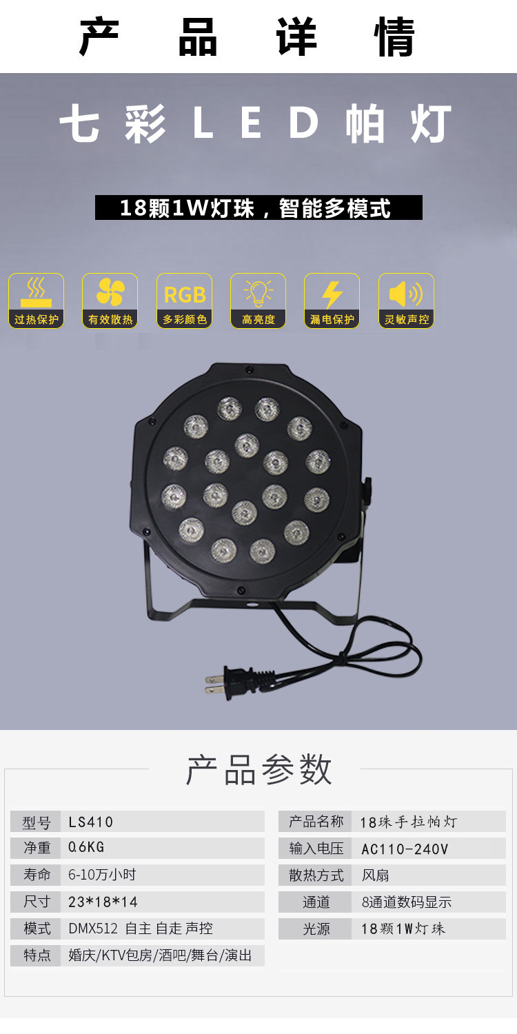 무빙 헤드 라이트 LED 무대 조명 풀 컬러 파 라이트 음성 제어 컬러 조명 KTV 룸 바 웨딩 18구 파 라이트 눈부신 조명