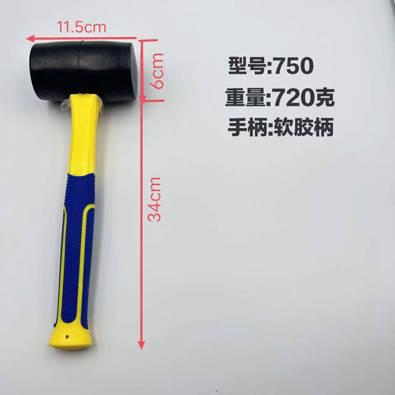 • 750 빨간 철 손잡이 고무 망치