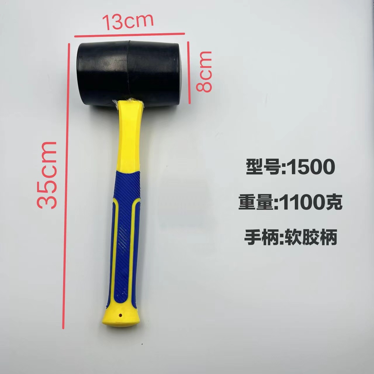 • 1500 빨간 철 손잡이 고무 망치