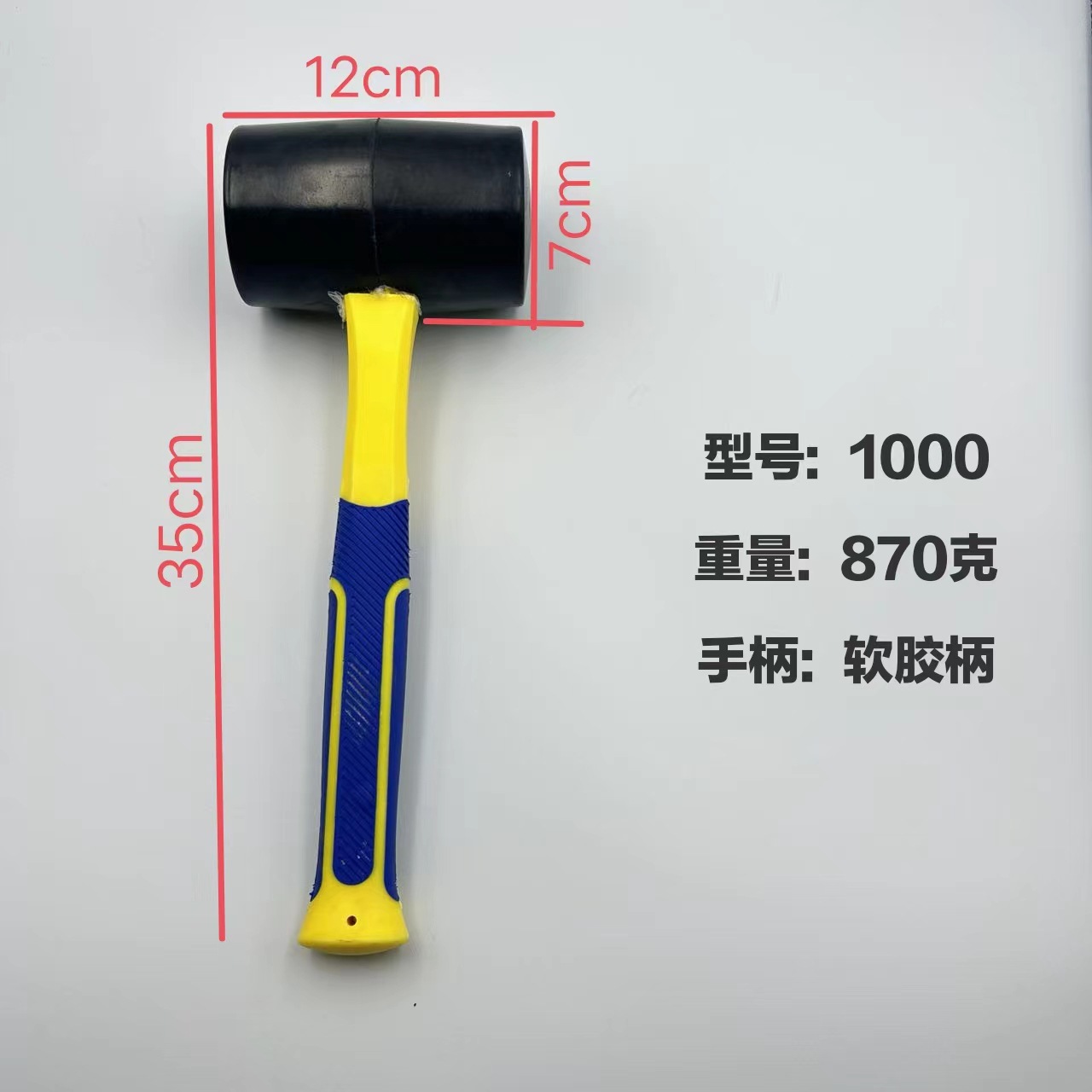 • 1000 빨간 철 손잡이 고무 망치