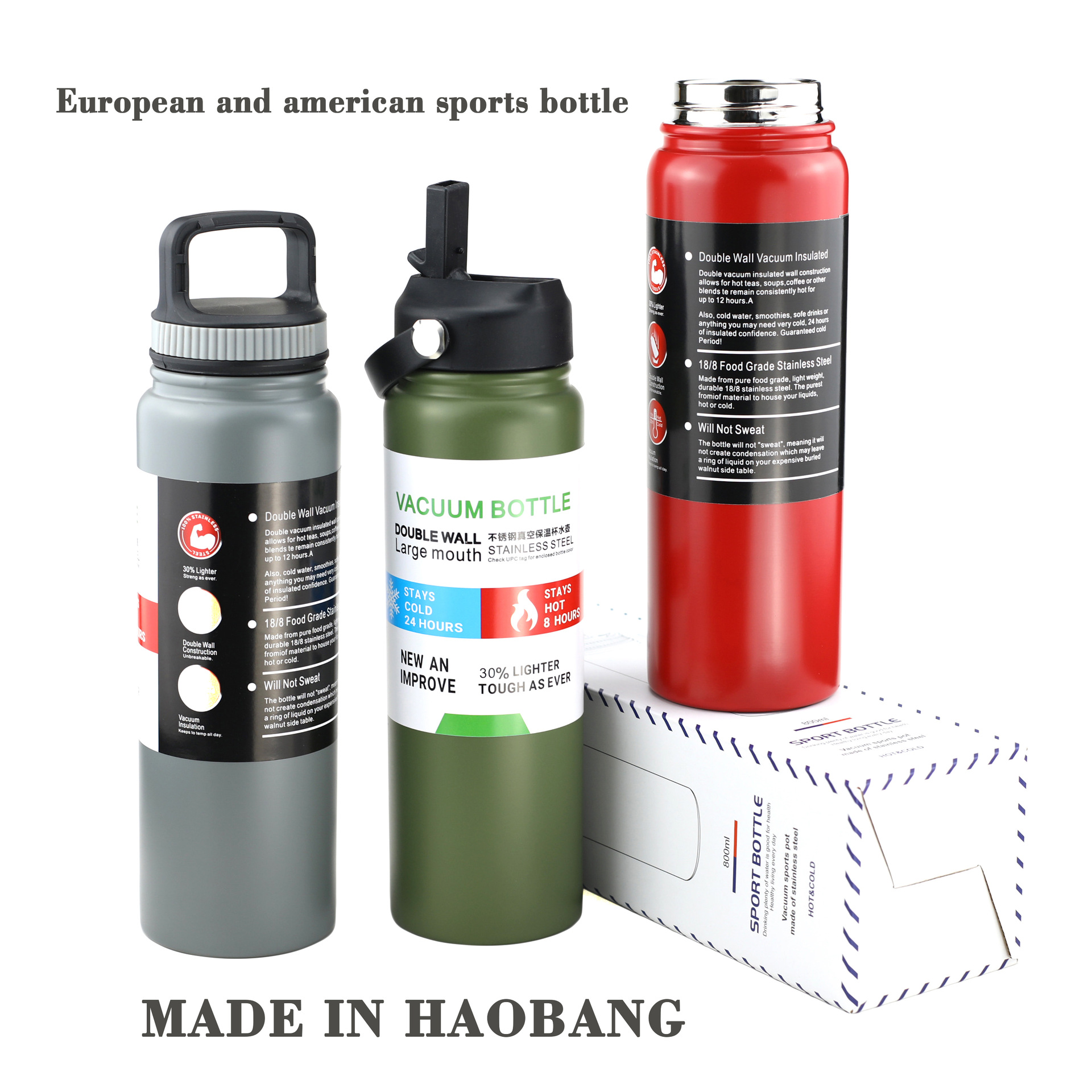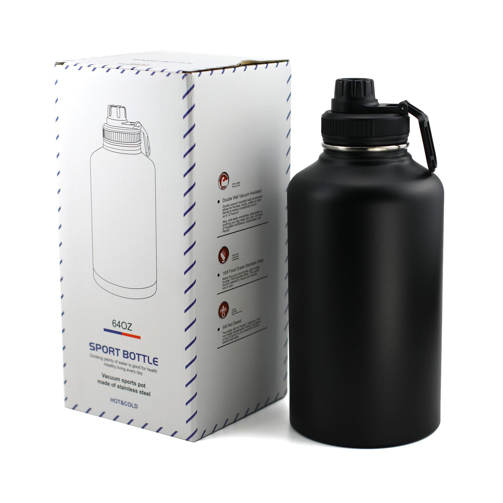 국경을 넘는 야외 스포츠 및 피트니스 휴대용 물병, 미국식 대용량 보온병, 이중층 304 스테인리스 스페이스 병
