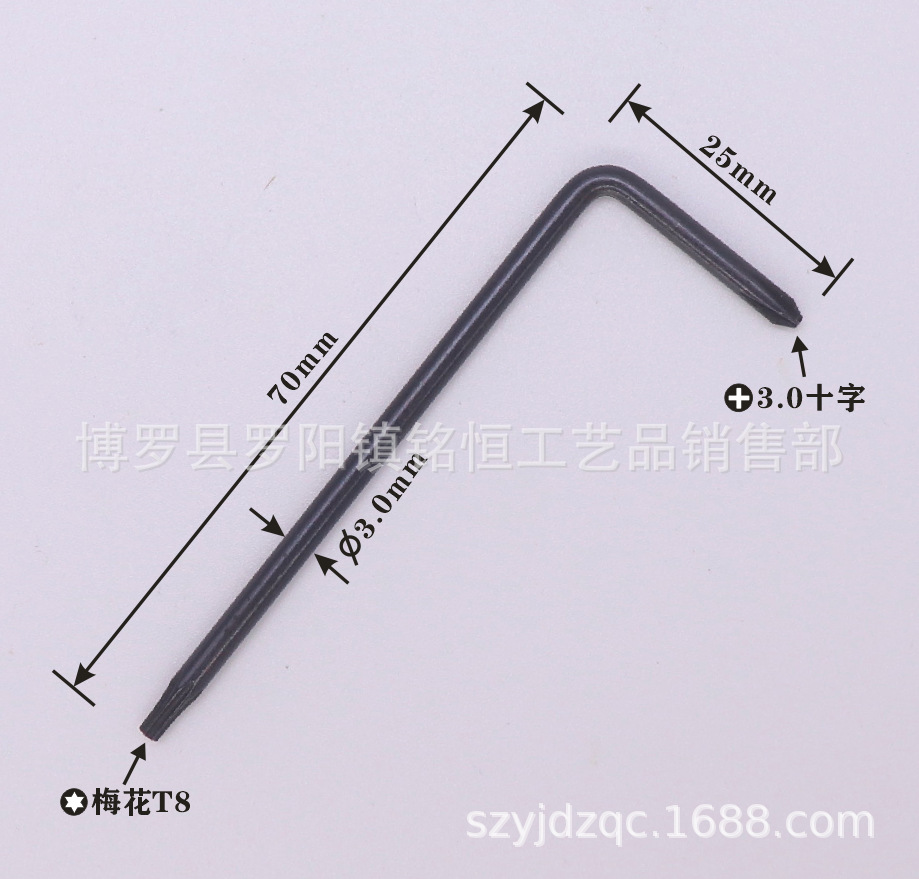 刀杆粗3mm,长边(T8梅花)70MM,短边(十字)25MM,