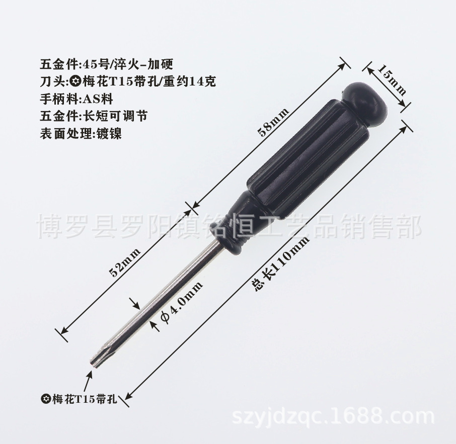 • 4*110mm (구멍이있는 T15) 검은 손잡이