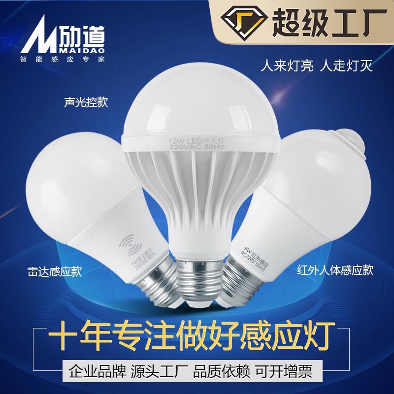 二、厂家直销LED声光控智能感应球泡灯和雷达微波感应球泡灯/人体红外感应球泡灯,主要用于走廊、楼道、安全通道等公共区域的物业场所,节能高效。