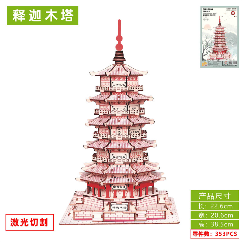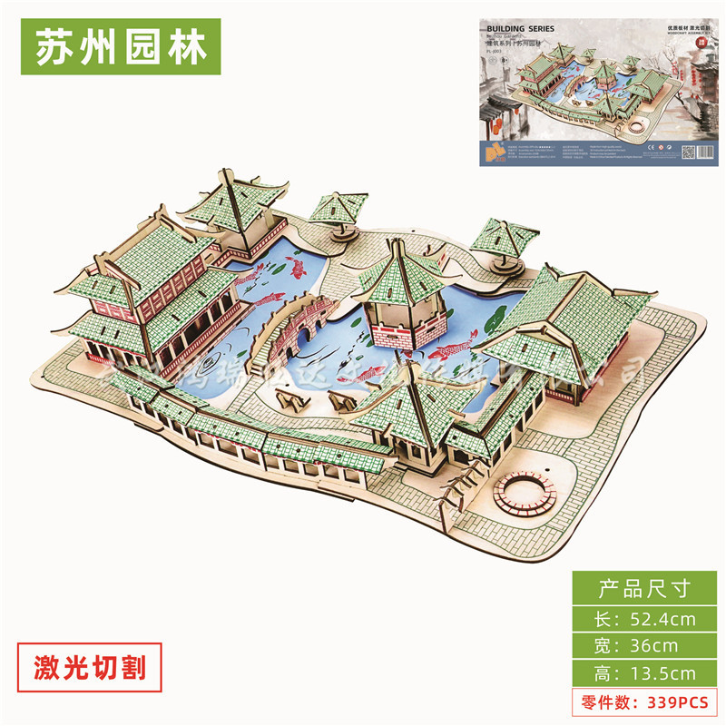 레이저 절단 고대 건축 모형 수제 입체 나무 퍼즐 골동품 시리즈 장난감 도매스토어 가기