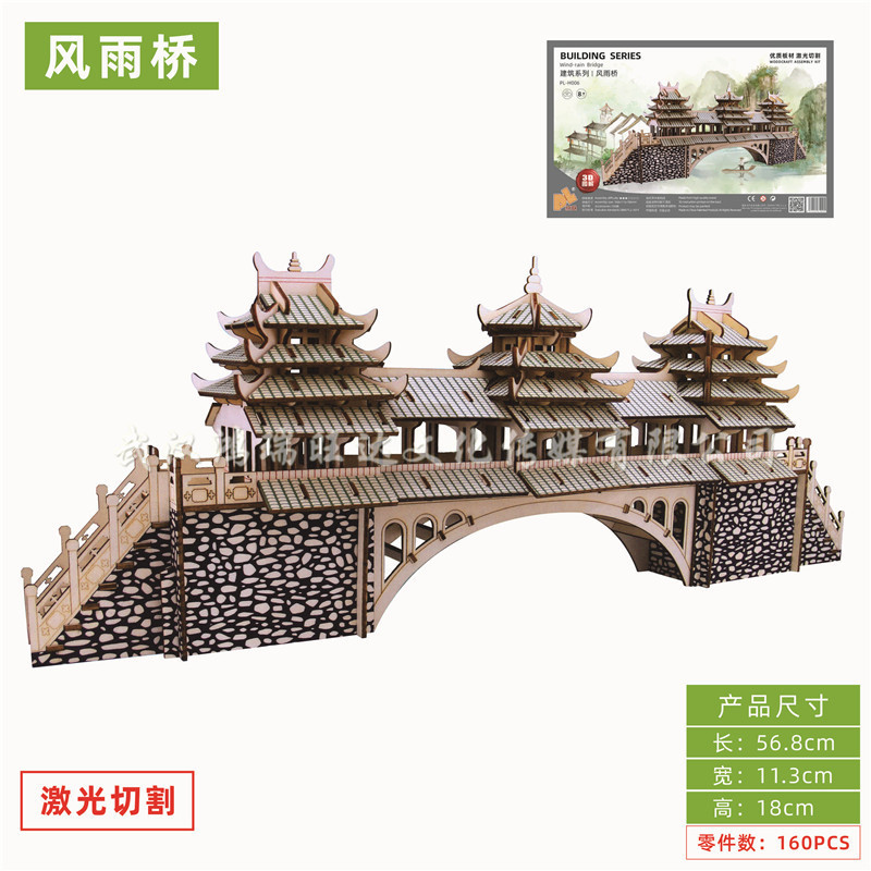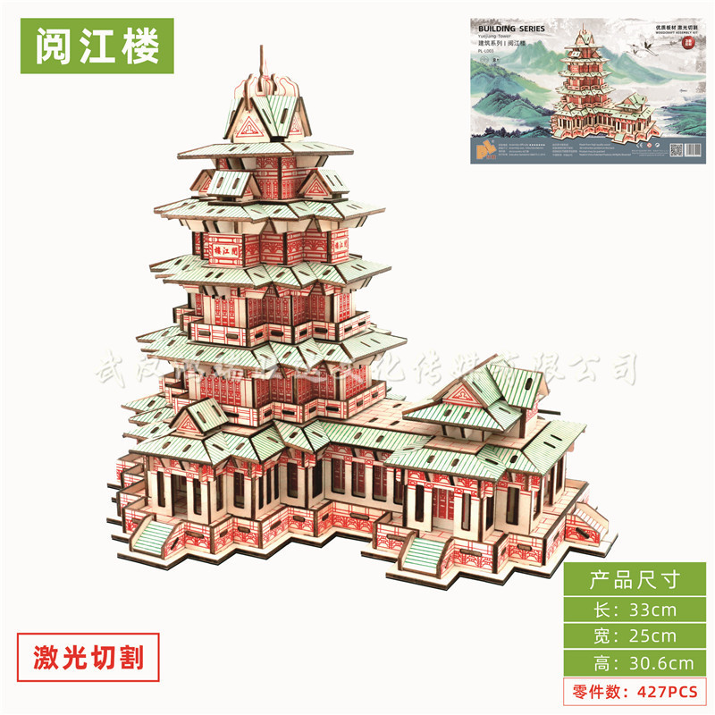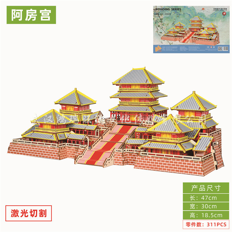 레이저 절단 고대 건축 모형 수제 입체 나무 퍼즐 골동품 시리즈 장난감 도매