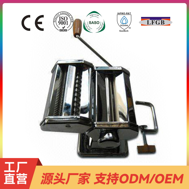 该机选用进口材料制作,全金属镀铬,结构紧凑、造型新颖、美观大方、光洁卫生,一机多用,可压制粗细面条、饺子皮、包子皮及馄饨等多样面食,形状整齐,厚薄匀称,是现代家庭好帮手。