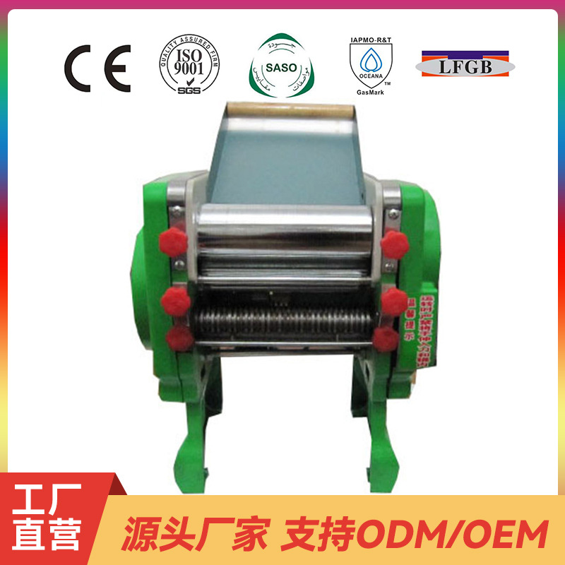 不锈钢制,可压制成0.3---3mm厚度,该机光洁卫生、操作方便,能压制宽窄两种面条及馄饨皮、面叶,用该机压制的面条同手擀一样光滑、柔软、可口好吃。