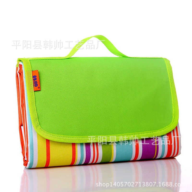 产品特点:本产品采用高级布料和无毒PE材料经高温融合压制而成。铺在草坪或沙滩上,可防水,防湿,防沙又能保持食品衣物干净卫生,还可以防止虫蚁等有害细菌的侵袭,携带方便,经久耐用,是外出旅游 戏和休闲活动的好伴侣。