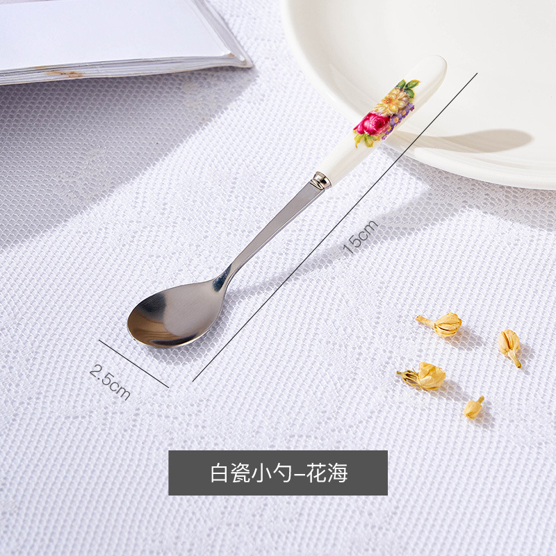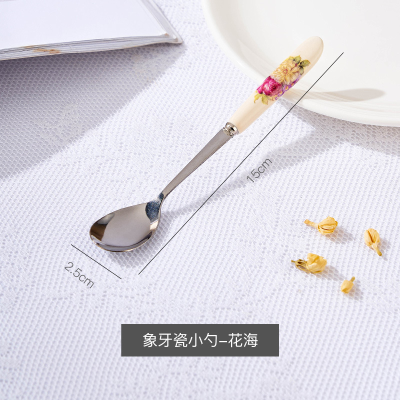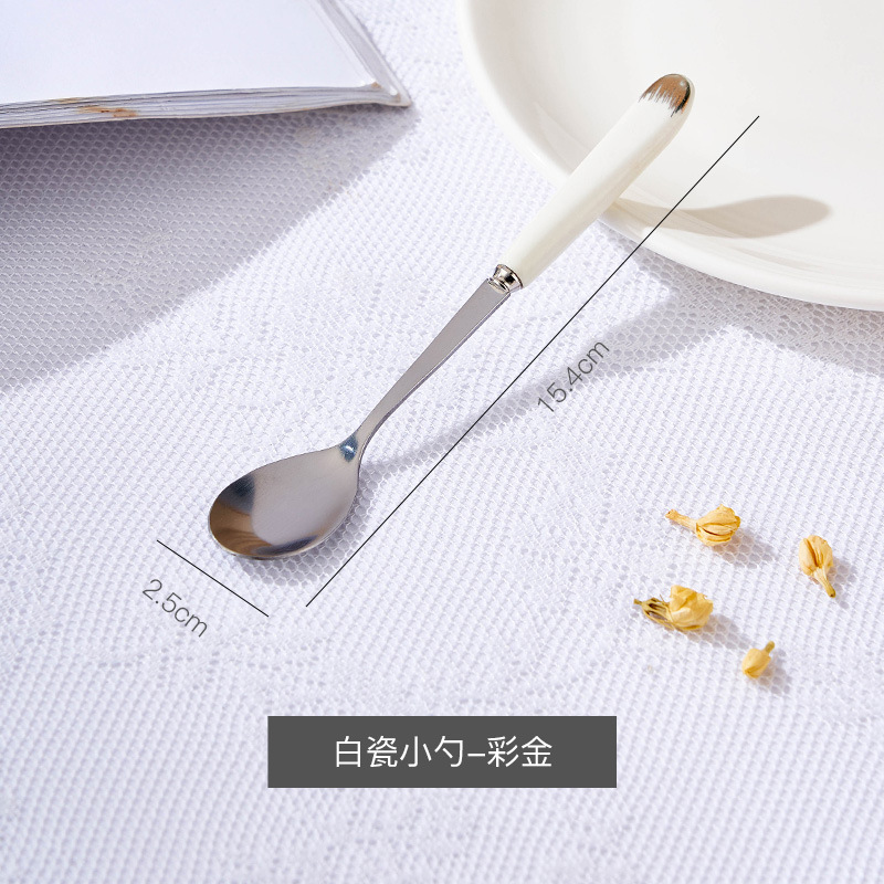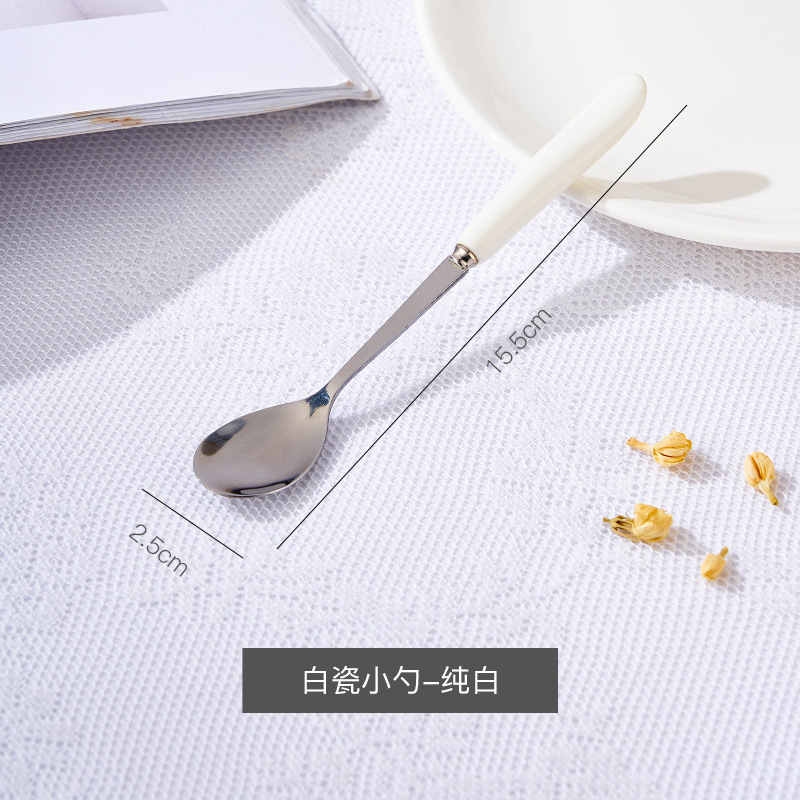 도매 홈 다이렉트 세라믹 믹싱 스푼 스테인레스 스틸 작은 우유 차 스푼 과일 파우더 스푼 컵 스푼 크리에이티브 커피 스푼