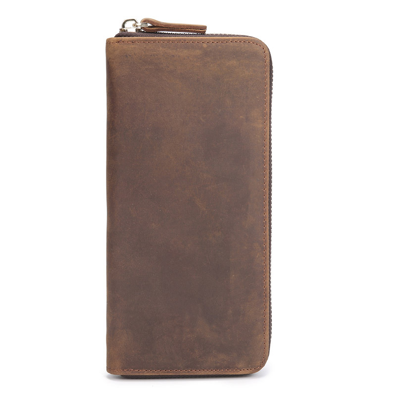 8875 미친 말 가죽 긴 지갑 남성용 지갑 빈티지 탑 레이어 소가죽 정품 가죽 휴대 전화 가방 클러치 백 멀티 포켓스토어 가기