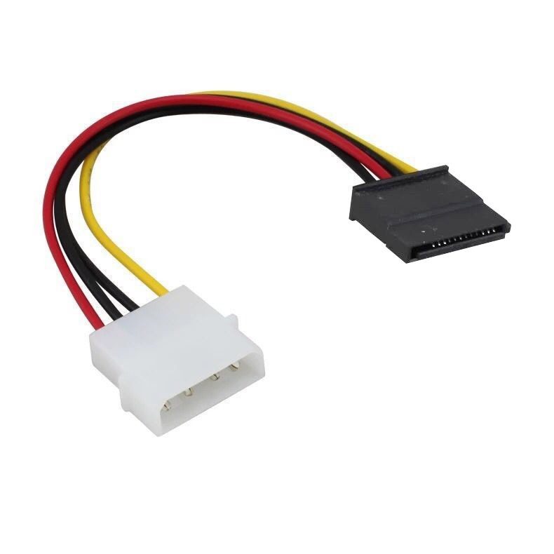 用途:将D型4针电源插头转换成SATA电源插头,使得没有SATA电源插头的电脑电源可以为SATA设备供电。常用的SATA设备有SATA硬盘、SATA光驱等