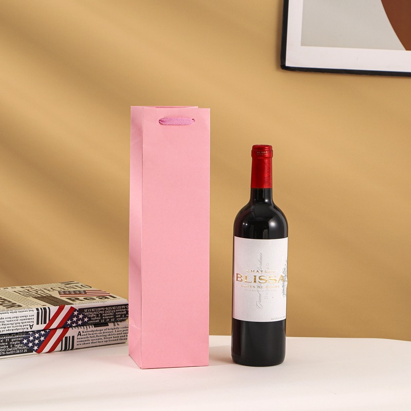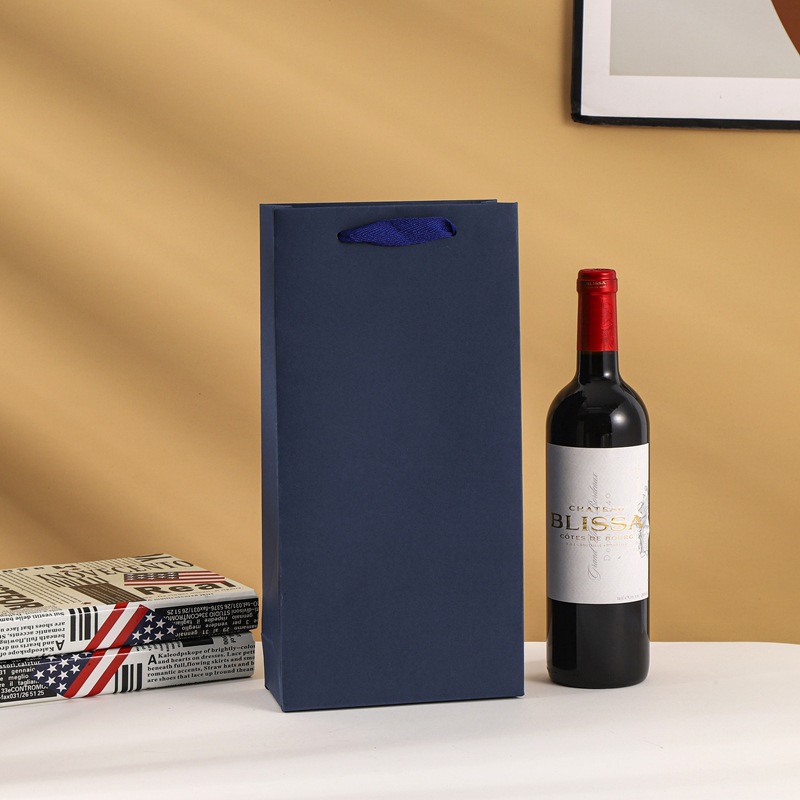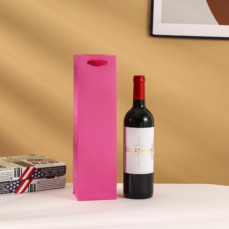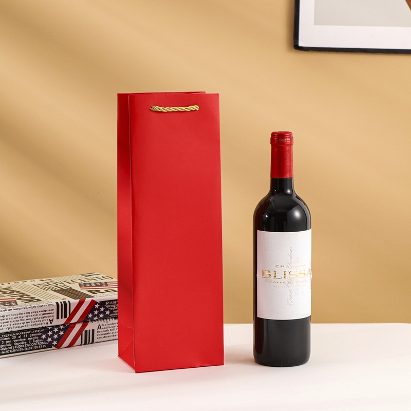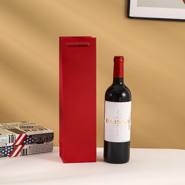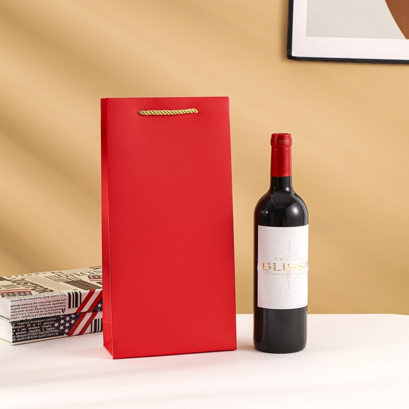 인쇄 가능한 로고 포장 가방 단일 및 이중 크래프트 종이 핸드백 제조 업체 도매가 포함된 고급 단색 레드 와인 선물 가방
