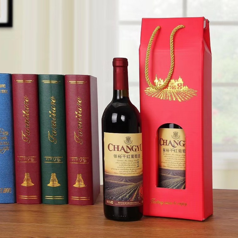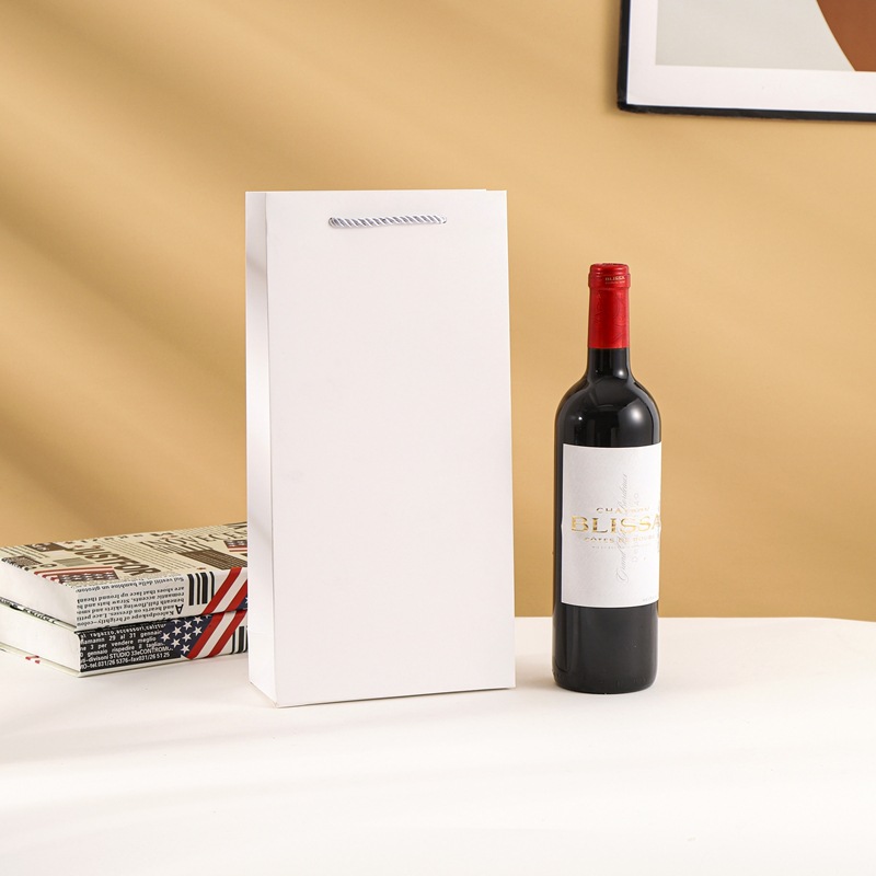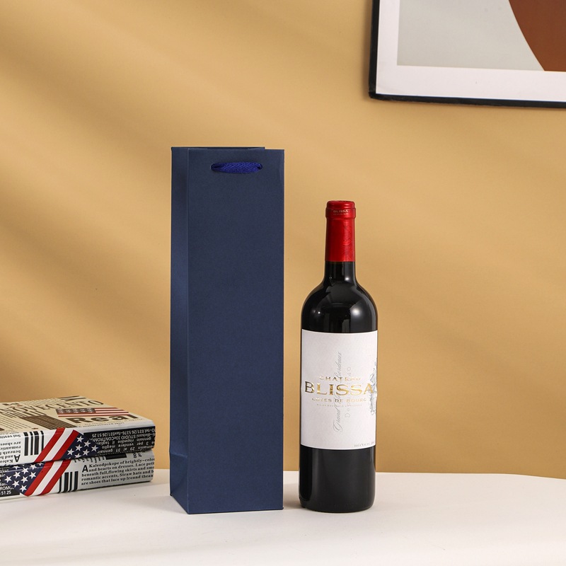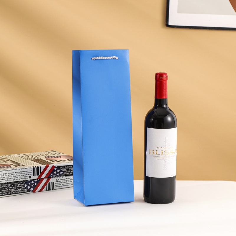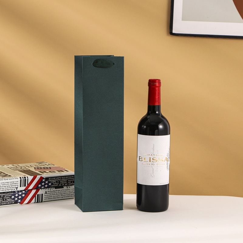 인쇄 가능한 로고 포장 가방 단일 및 이중 크래프트 종이 핸드백 제조 업체 도매가 포함된 고급 단색 레드 와인 선물 가방