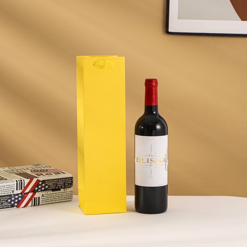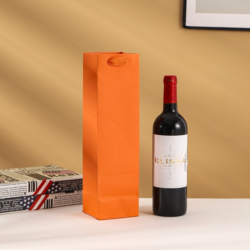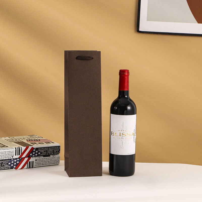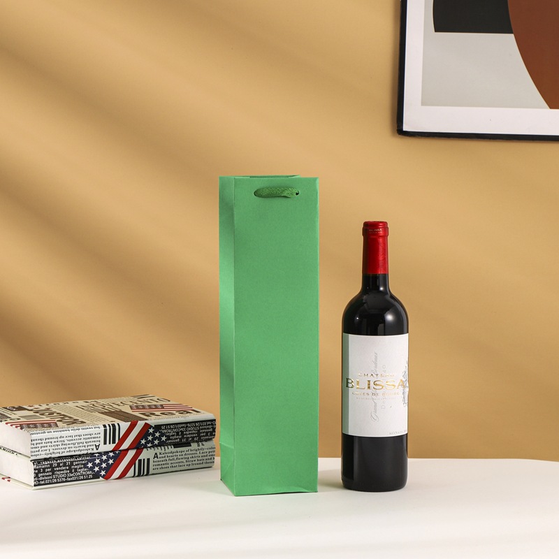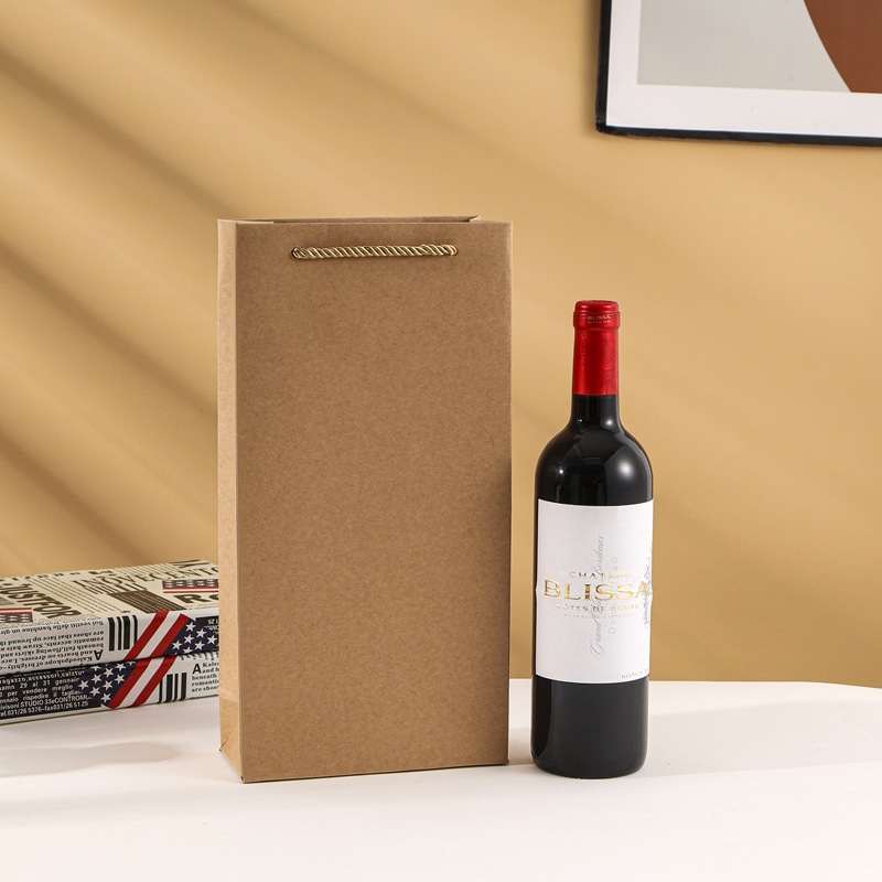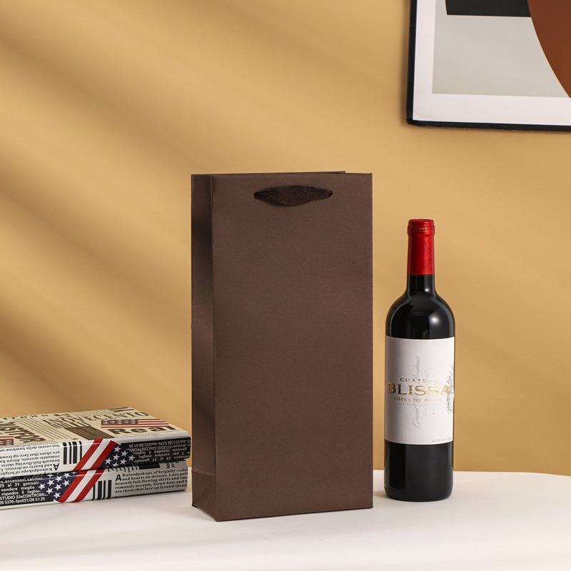 인쇄 가능한 로고 포장 가방 단일 및 이중 크래프트 종이 핸드백 제조 업체 도매가 포함된 고급 단색 레드 와인 선물 가방스토어 가기