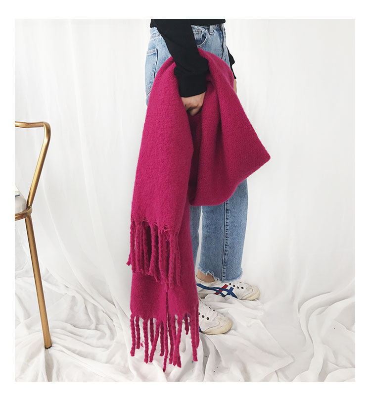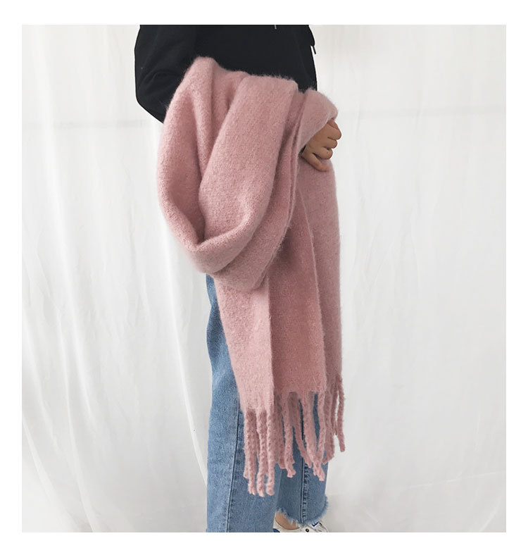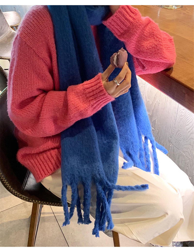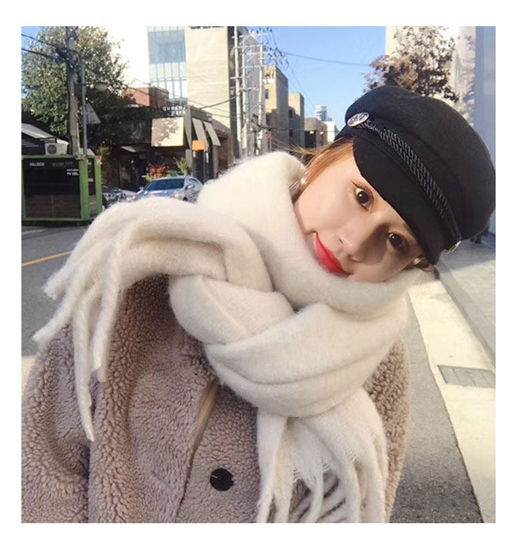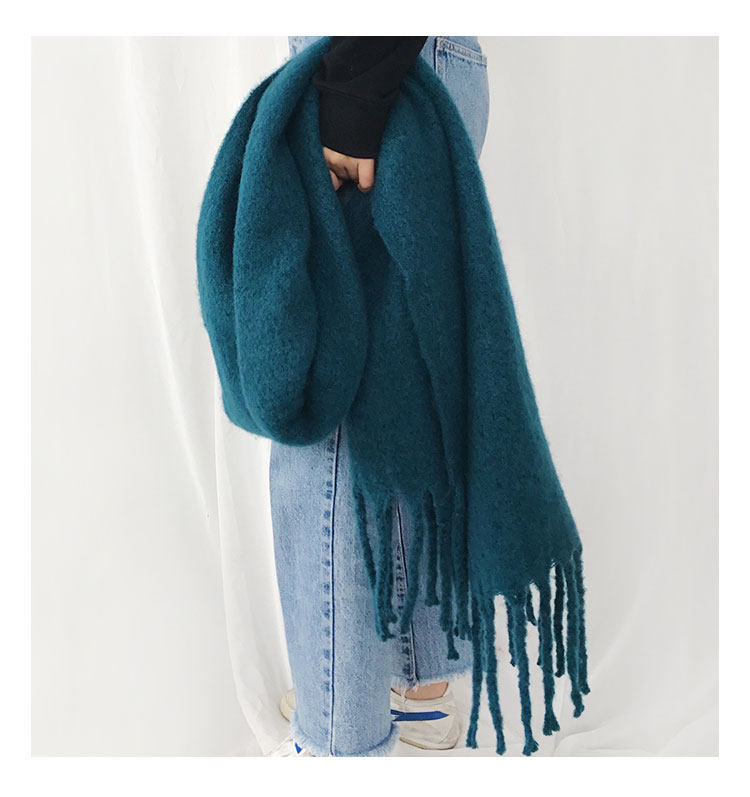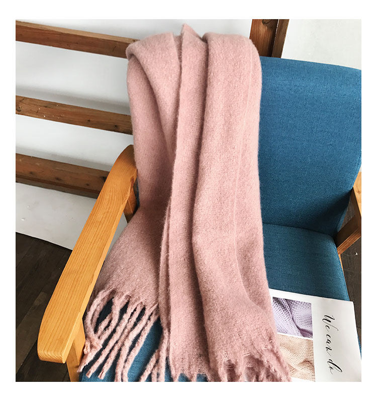 모조 캐시미어 두꺼운 스카프 여성용 겨울 보온 숄 한국 스타일 겨울 모헤어 부드럽고 두꺼운 프린지 스카프