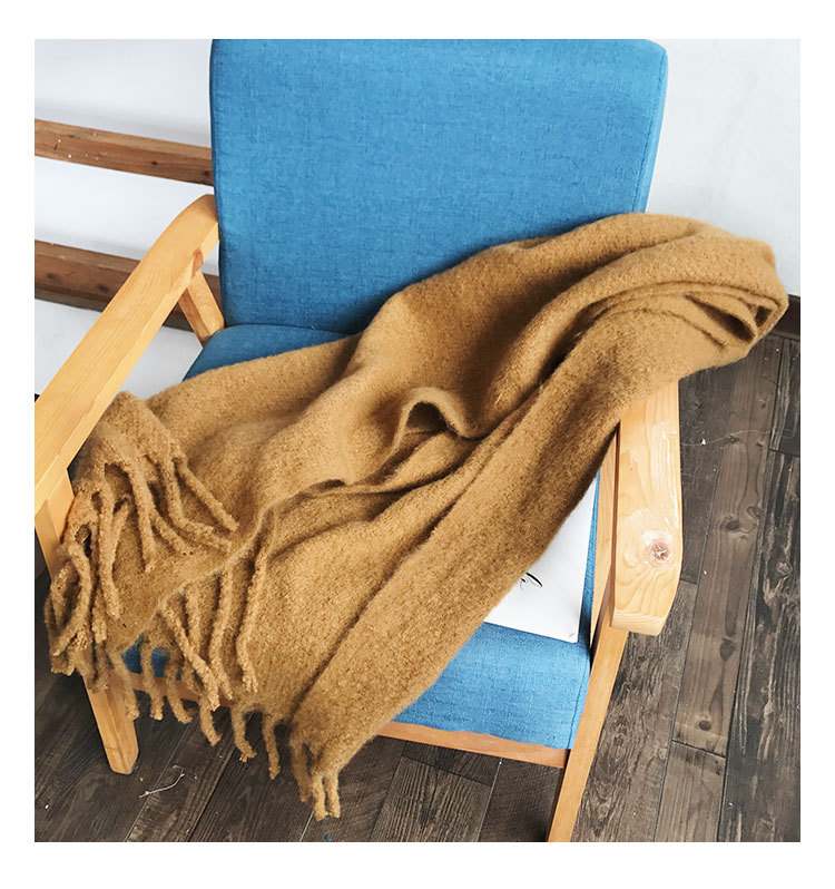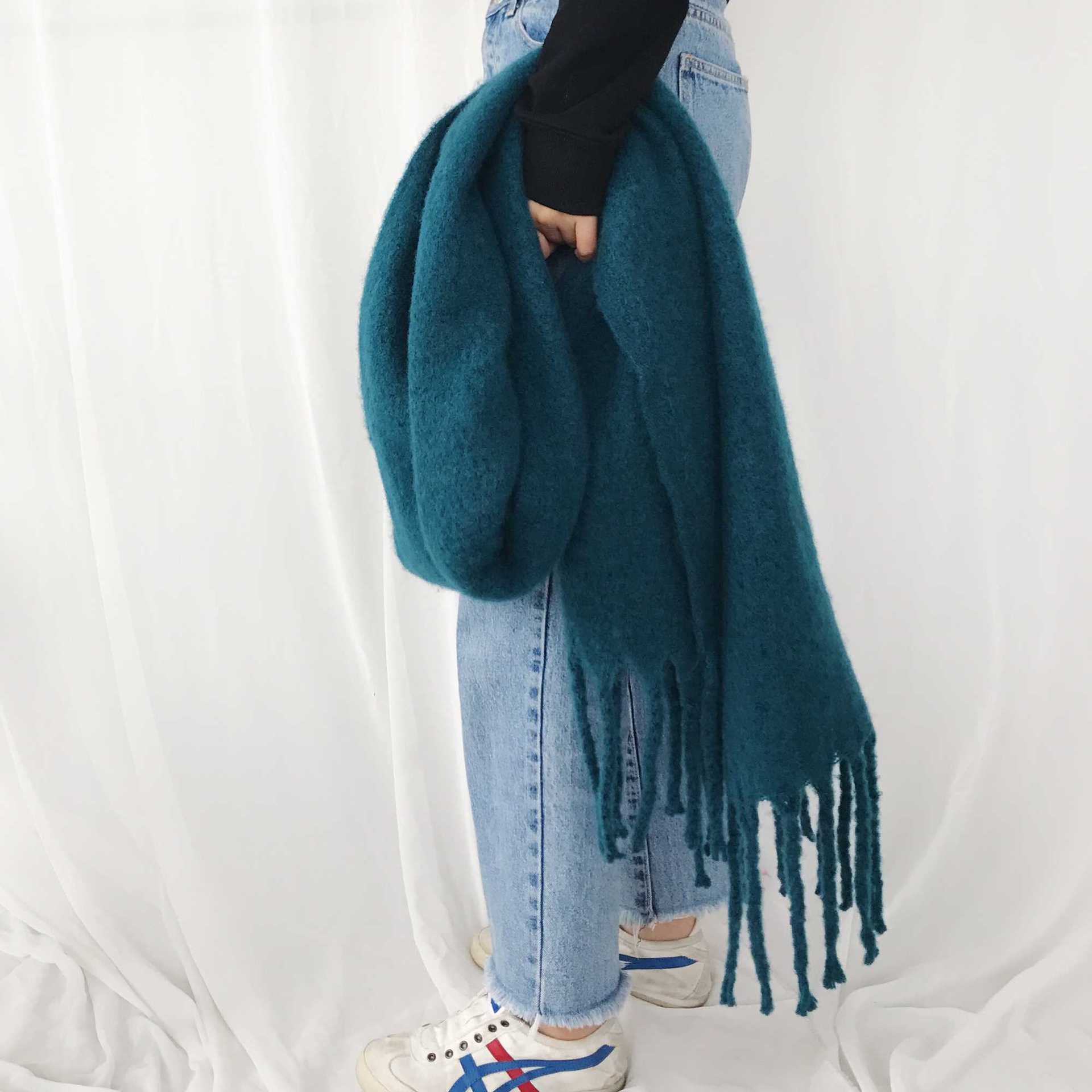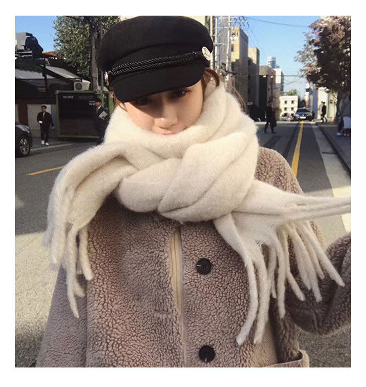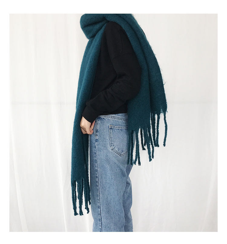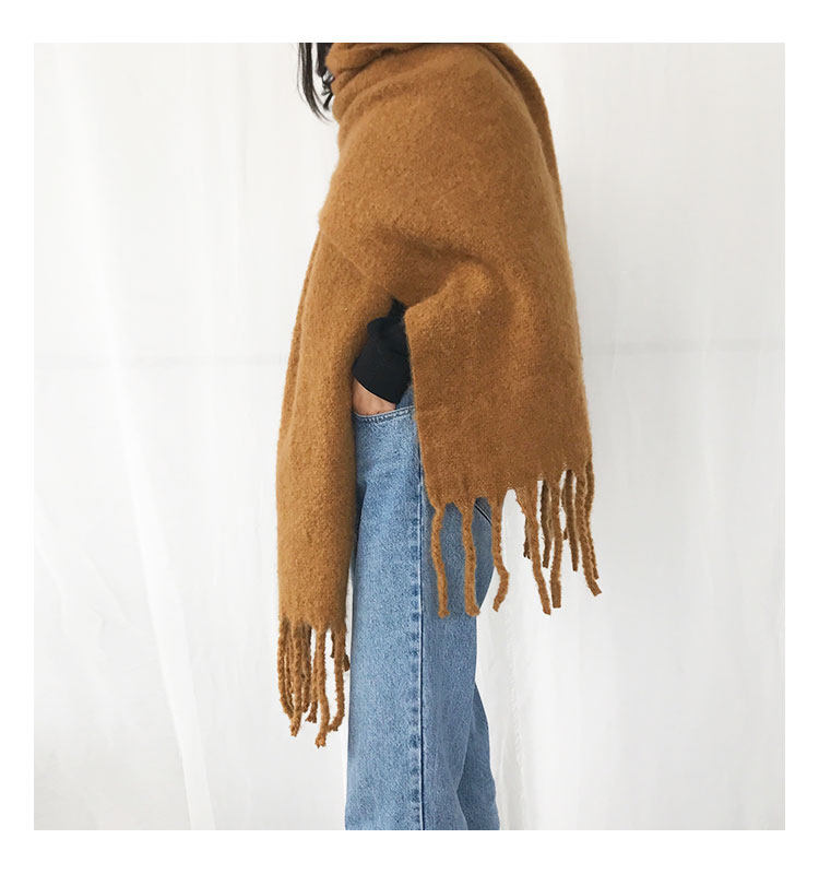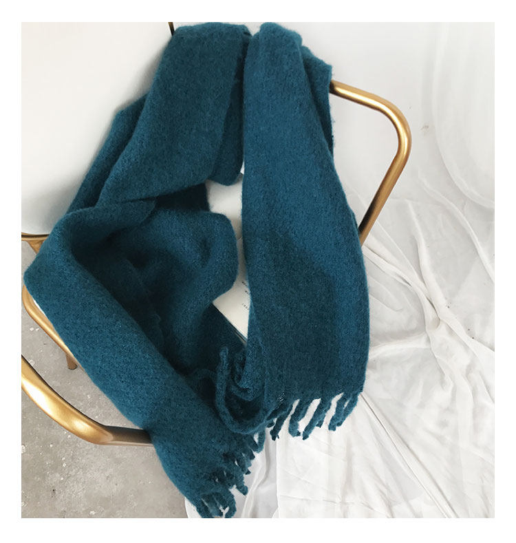 모조 캐시미어 두꺼운 스카프 여성용 겨울 보온 숄 한국 스타일 겨울 모헤어 부드럽고 두꺼운 프린지 스카프