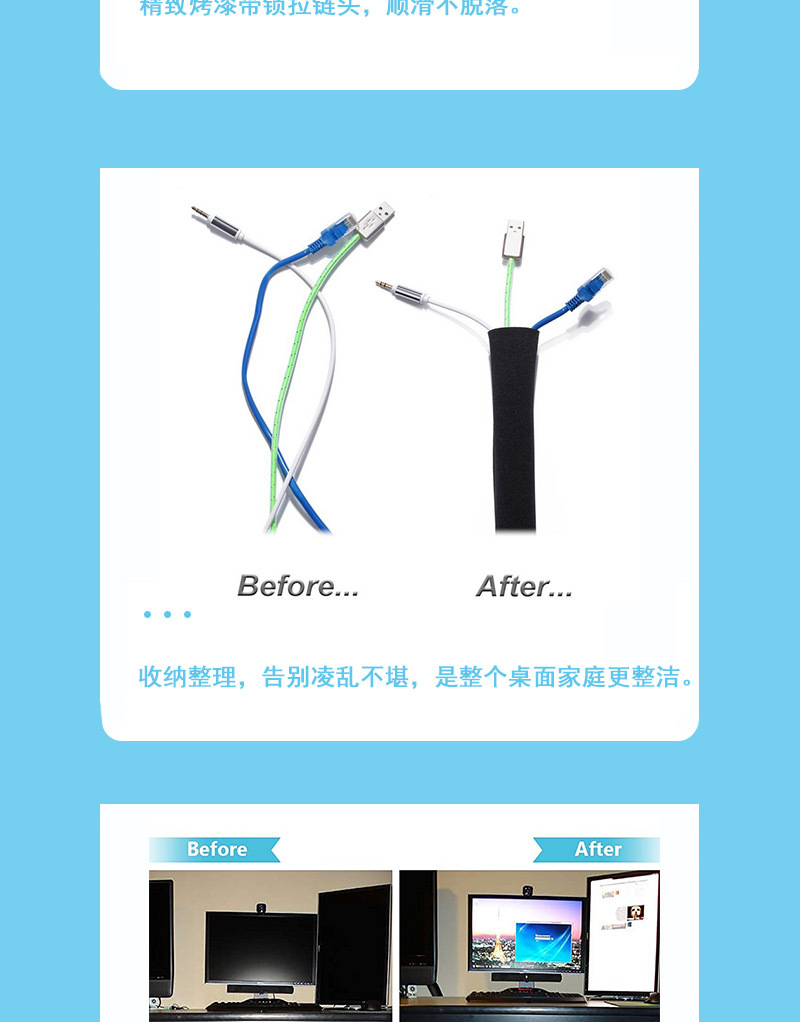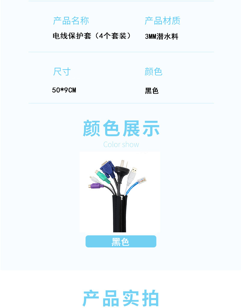 다이빙 소재 케이블 전선 보호 커버 데스크탑 정리용 라인 커버 50cm 네오프렌 지퍼 케이블 커버