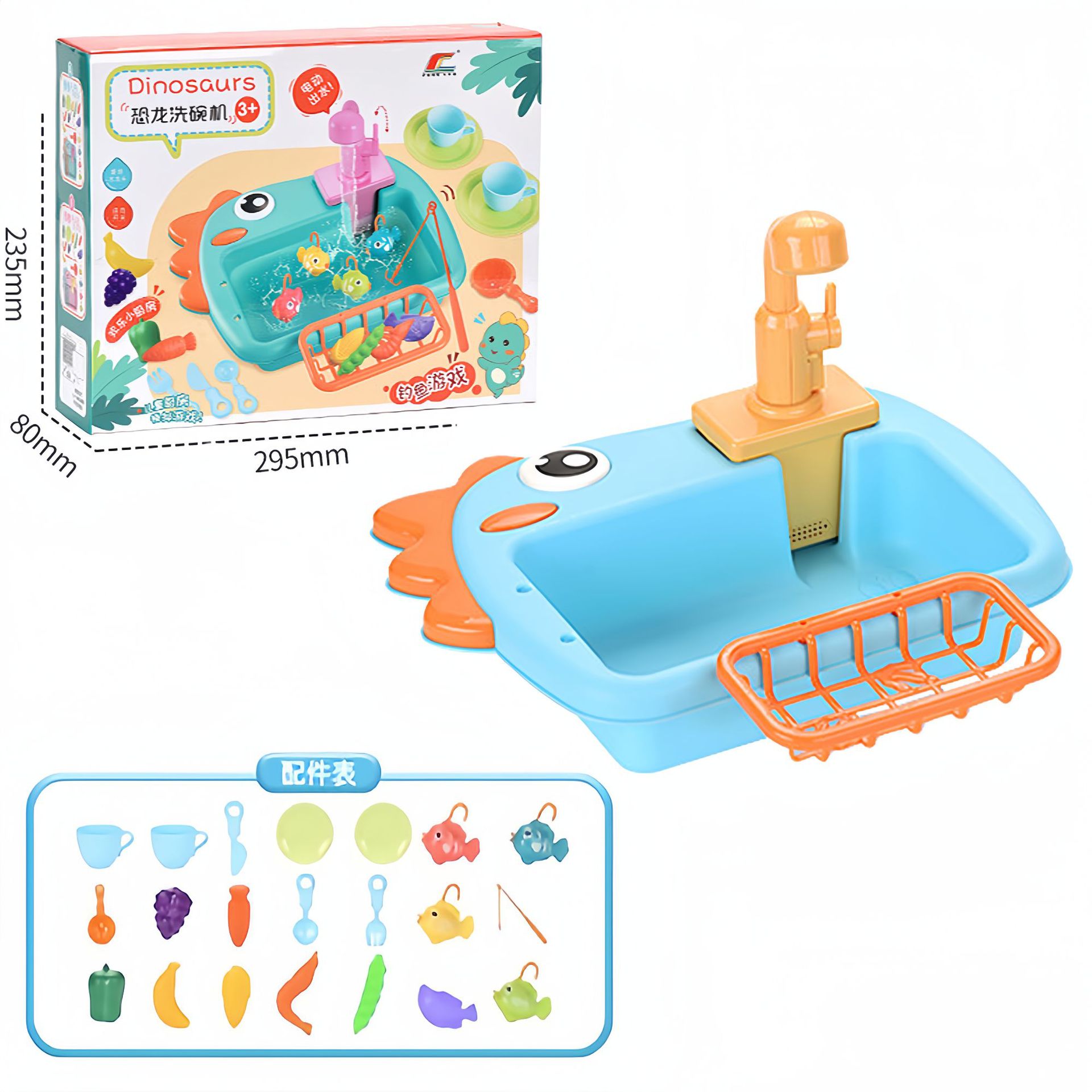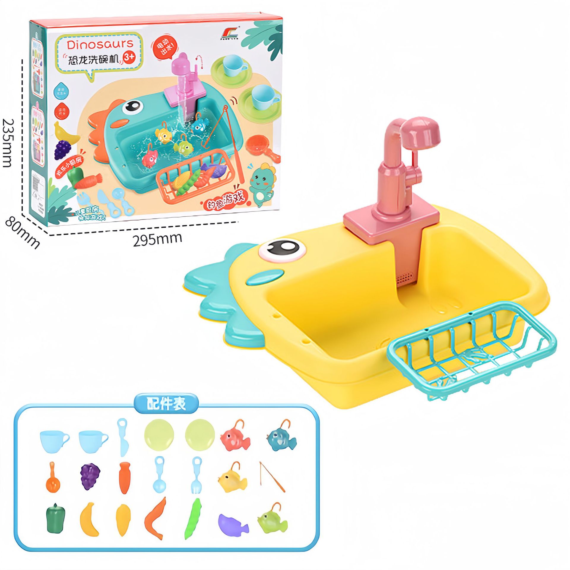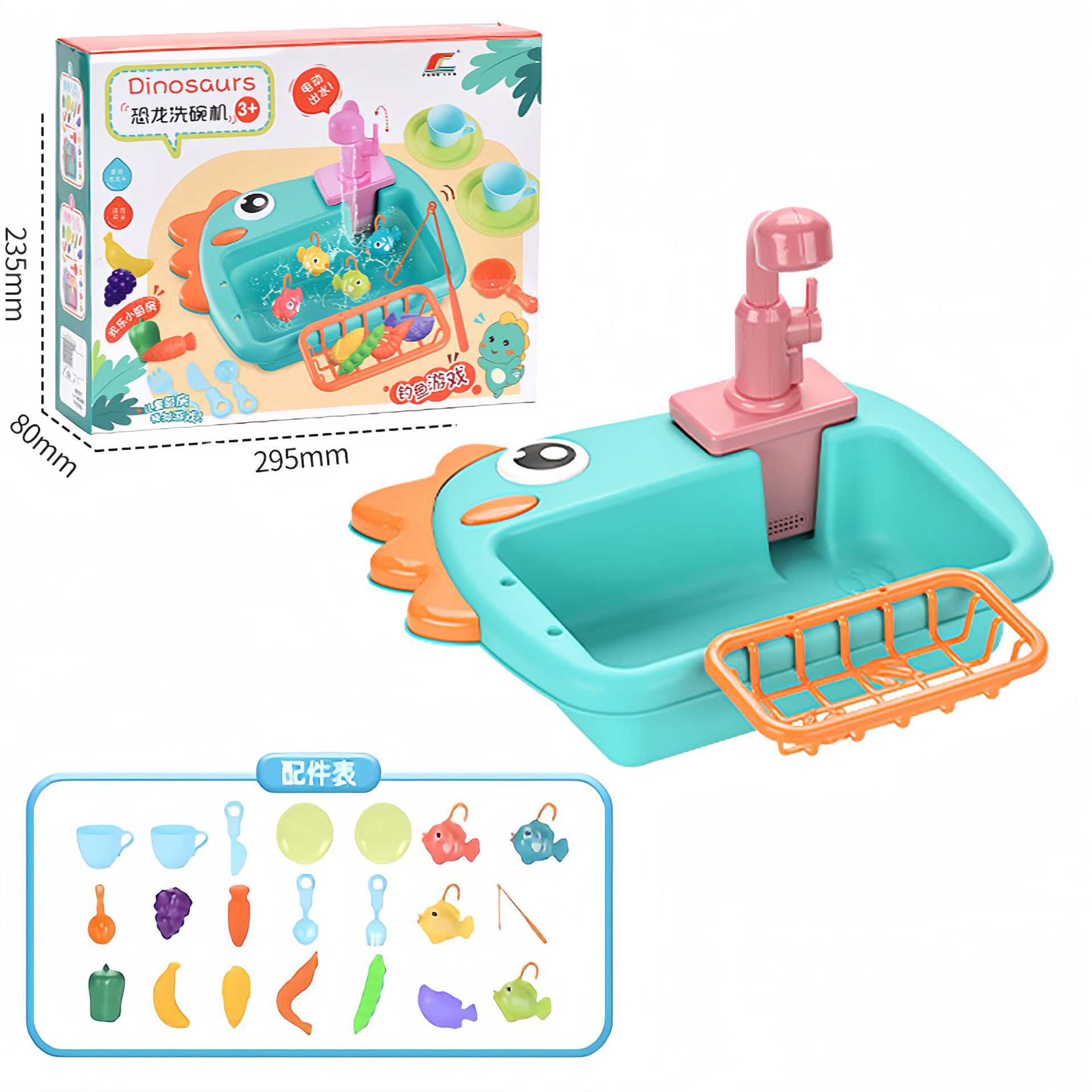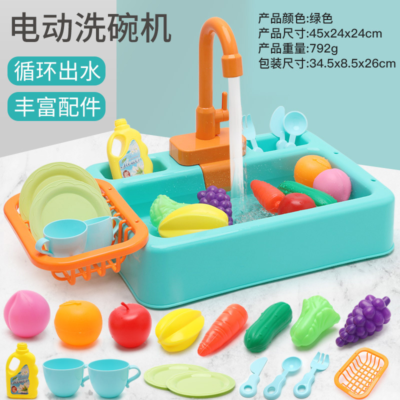 | 6058洗碗机 | 34.5*8.5*26 | 792g | 红色、黄色、绿色、深蓝色 | 杯子*2+盘子*2+橘子*1+桃子*1+苹果*1+杨桃*1+胡萝卜*1+白菜*1+瓜*1+葡萄*1+洗洁精*1+勺子*1+叉子*1+刀子*1+沥干篮*1+水槽*1+水龙头*1 | 2节5号电池(自备) | 75*38*79.5 | 24 | 21/19kg |