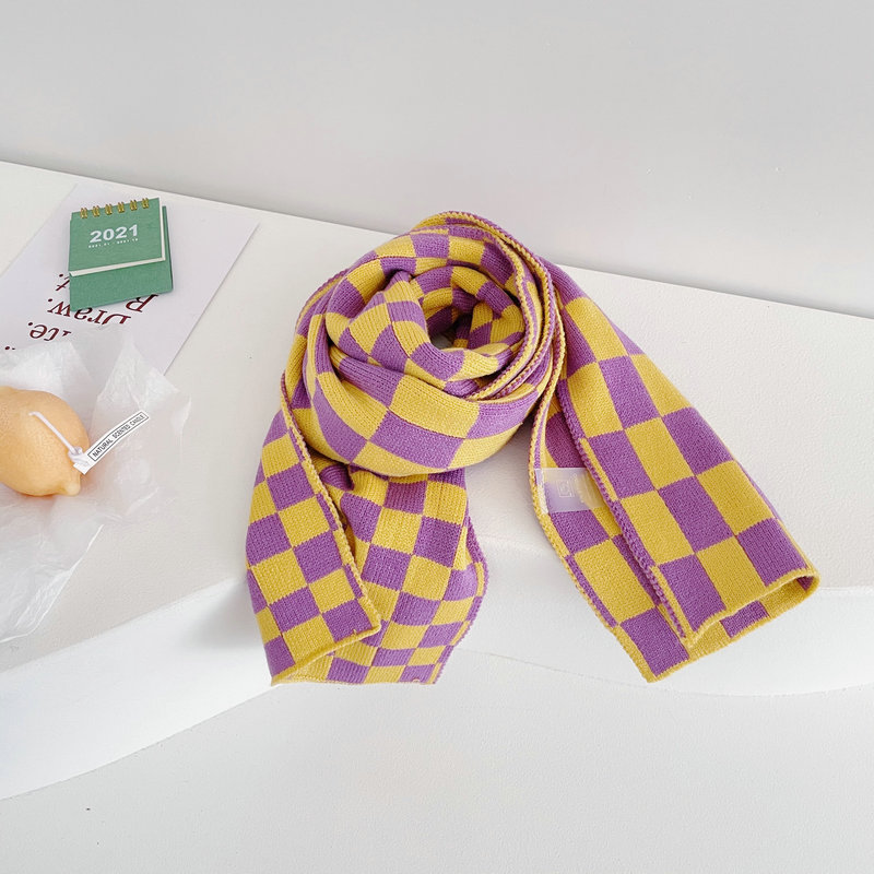 슈퍼 사랑 ~ 작은 체스 판 격자 무늬 니트 울 스카프 여성의 가을과 겨울 외부 대비 색상 학생 따뜻한 스카프