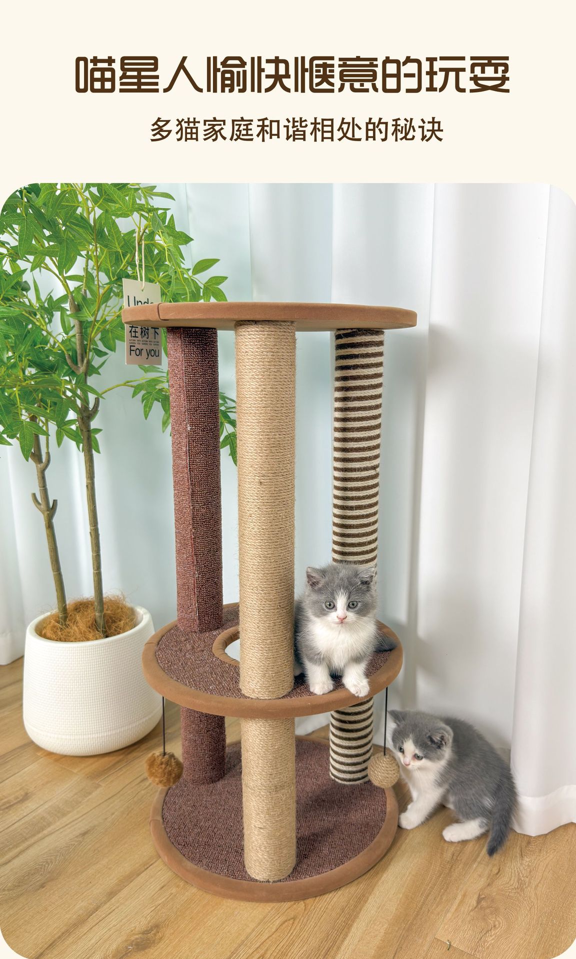새로운 고양이 등반 랙 다크 브라운 색상 머리없는 고양이 둥지 대마 로프 사계절 고양이 장난감 고양이 발톱 그라인딩 기둥 작은 고양이 점프 플랫폼