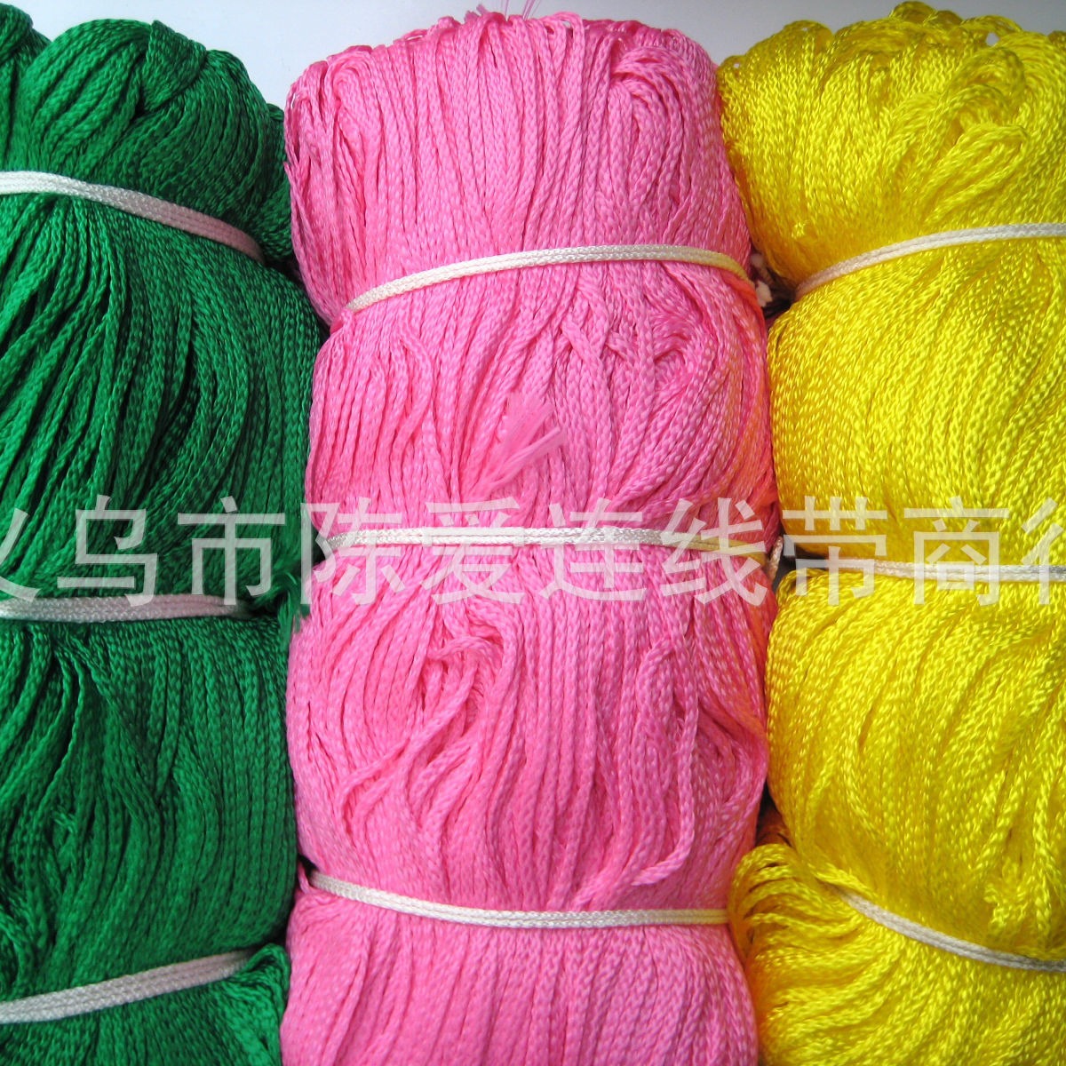 这一款是扁空心的,一共由8股绳子织成,所以称八股绳,材料是丙纶丝,也叫PP绳,丙纶绳质地柔软,主要用于装饰、捆绑.手袋、玩具包装,也可用来当做背带等。丙纶绳采用优质的丙纶材料经机织加工而成,水洗牢度高,干摩擦度强,不易褪色。每个颜色都按捆出货,每捆实数约900米,手工绕线,正负几米相差属于正常范围,请理解。谢谢!
