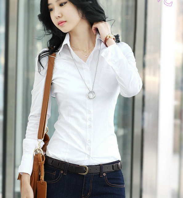 2024 봄, 가을 학생 한국 스타일 흰색 셔츠 여성 긴팔 다목적 기본 셔츠 대형 슬림핏 전문 작업복스토어 가기