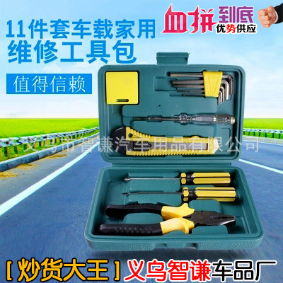 11종 차량 수리 도구 키트, 차량 비상 도구 상자 조합 세트, 자동차 용품 예비 도구 상자