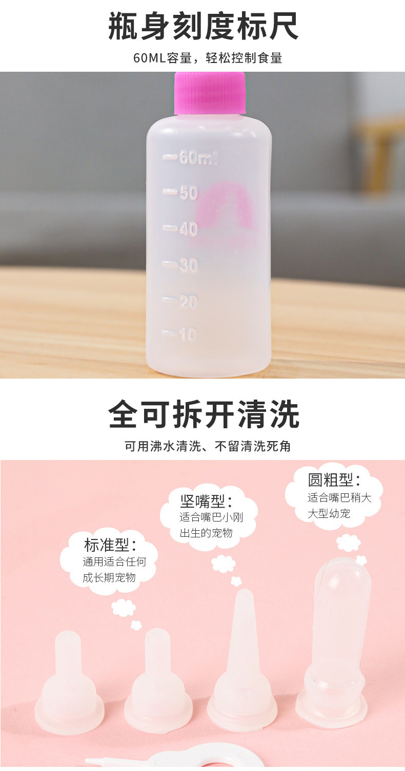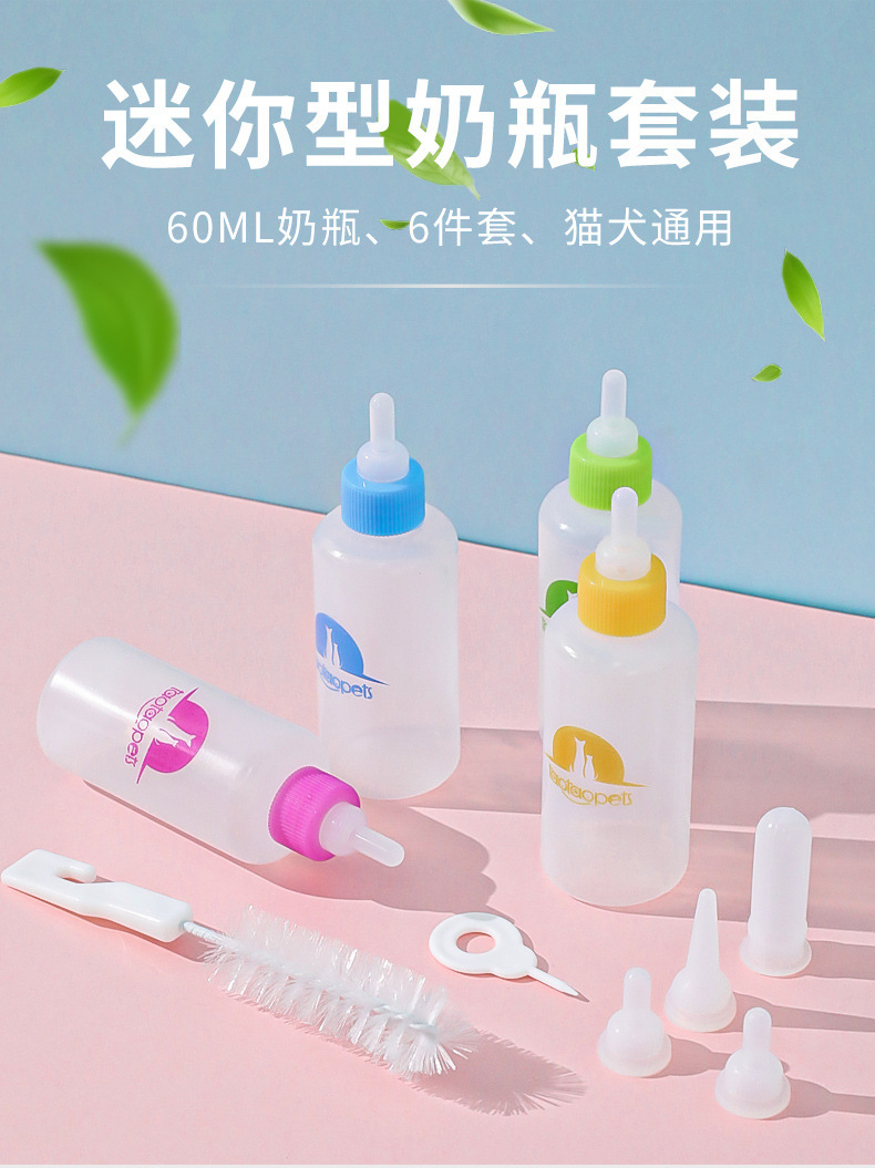 다채로운 미니 애완 동물 병 60ml 개와 고양이 피더 플라스틱 병 먹이 술꾼 애완 동물 개 용품