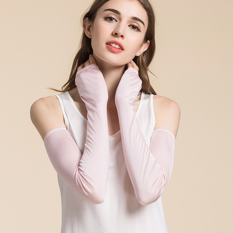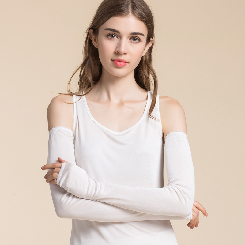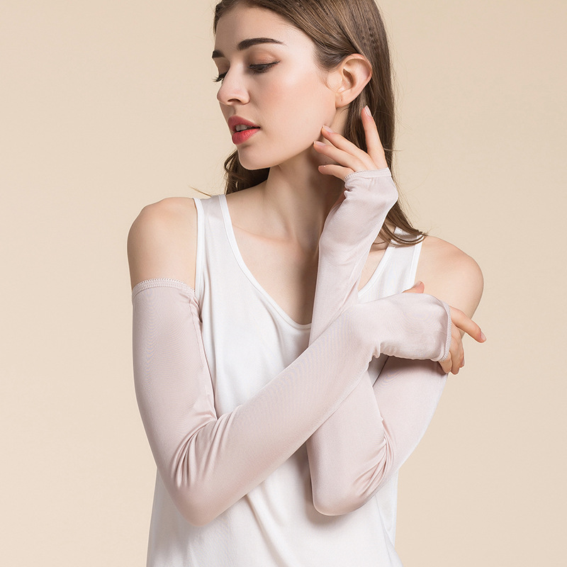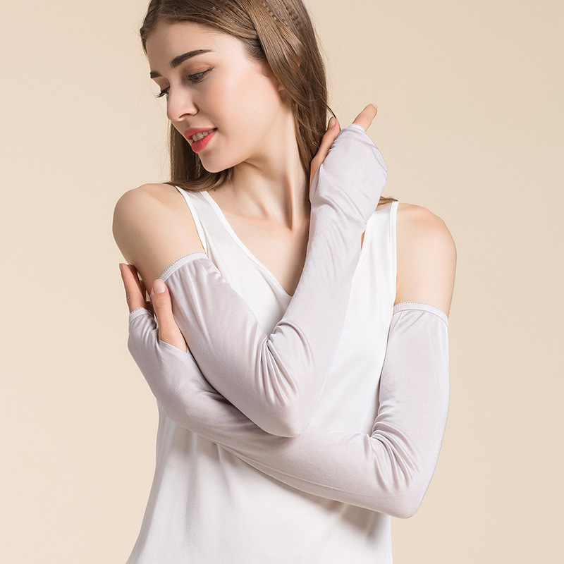 여성용 Huaye 여름 실크 자외선 차단제 슬리브, 확장된 자외선 차단 팔 보호대, 뽕나무 실크 얇고 편안하며 통기성이 뛰어난 긴 장갑