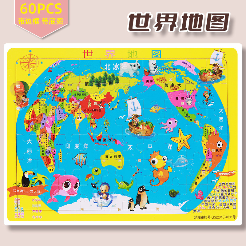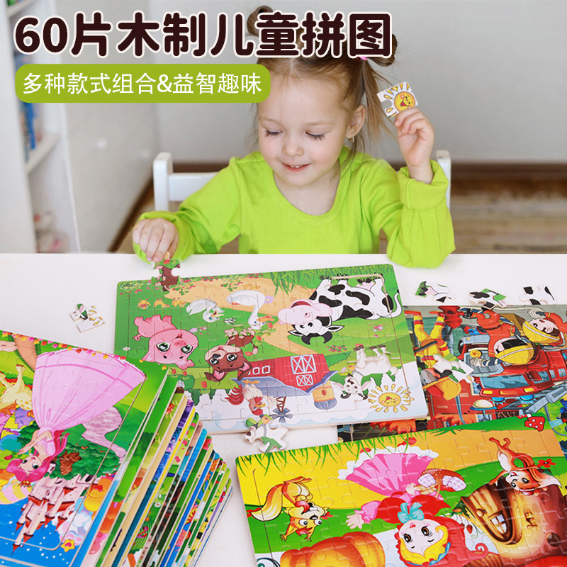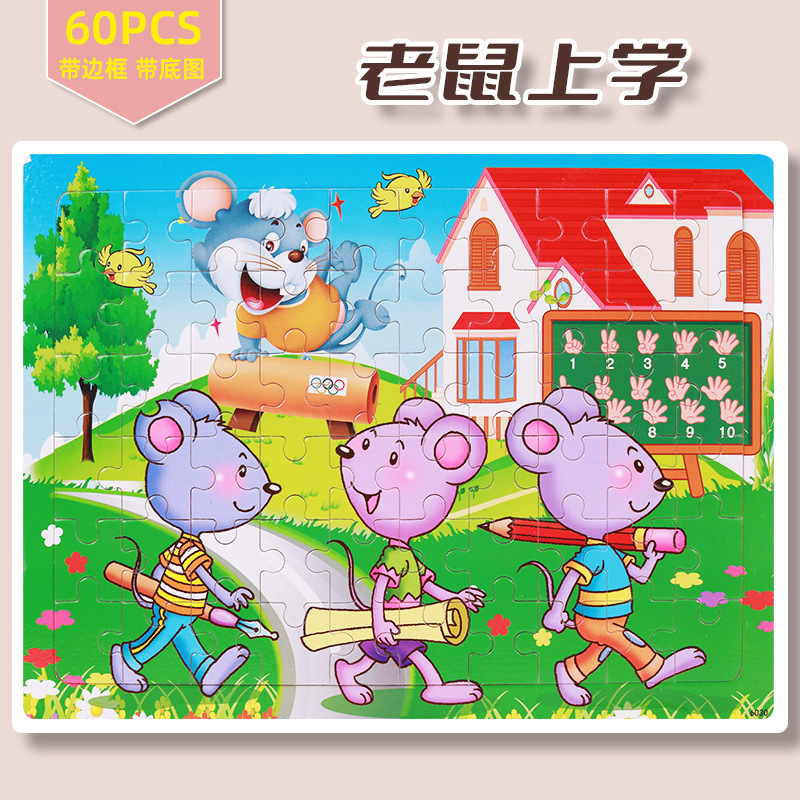 60조각 나무로 만든 4-5-6-7세 어린이 조기 교육 퍼즐 만화 바탕 그림이 있는 퍼즐스토어 가기