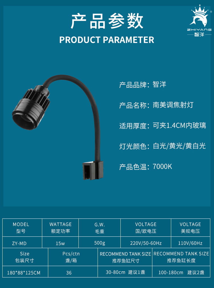 남미 어항 스포트라이트 초점 길이 조명 조정 수족관 수생 잔디 장식용 물고기 주도 빛 유럽 및 미국 영국 규정 아마존