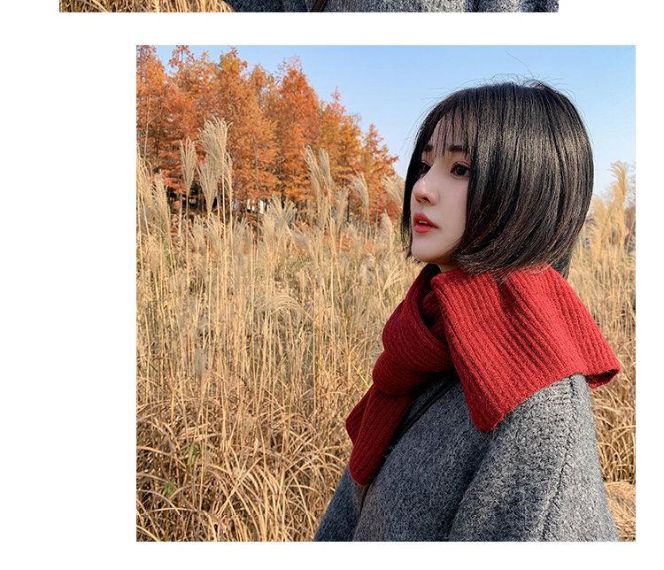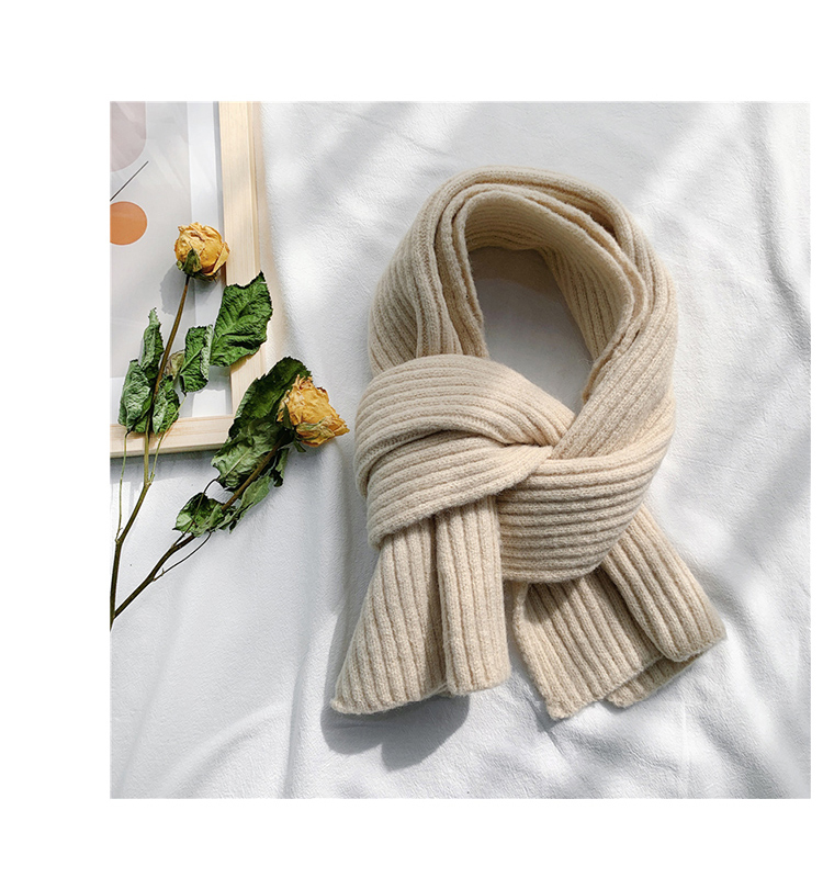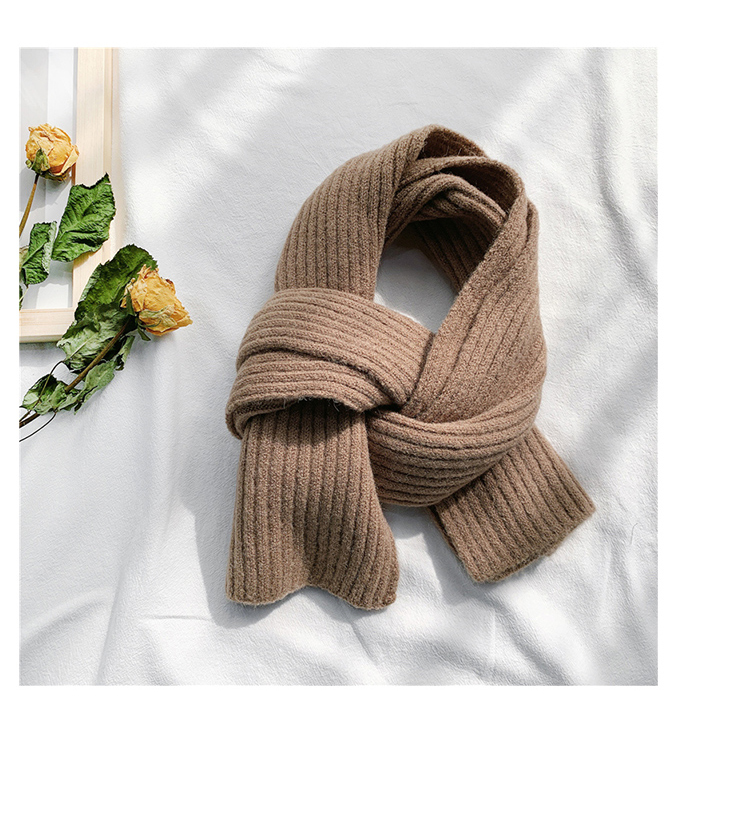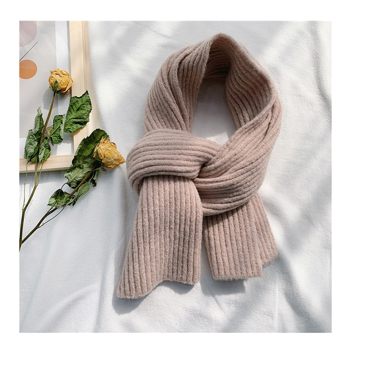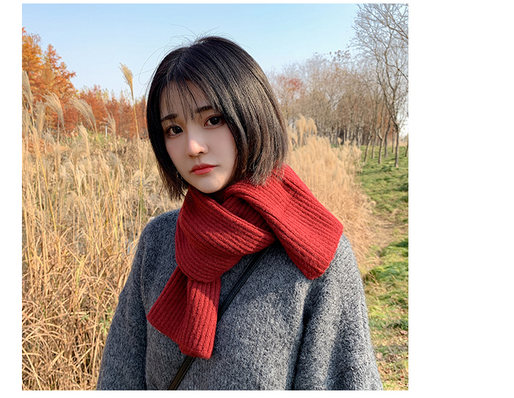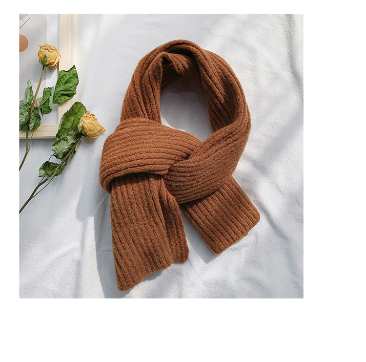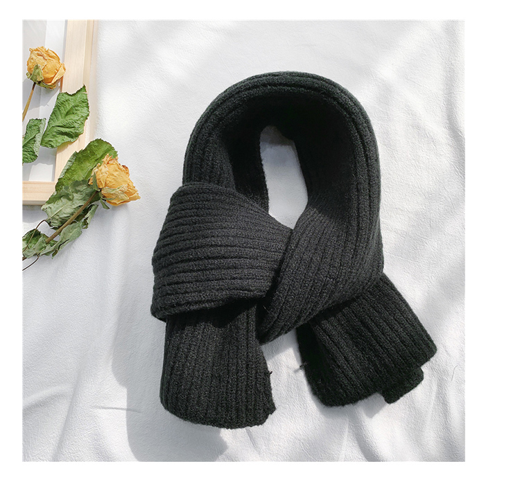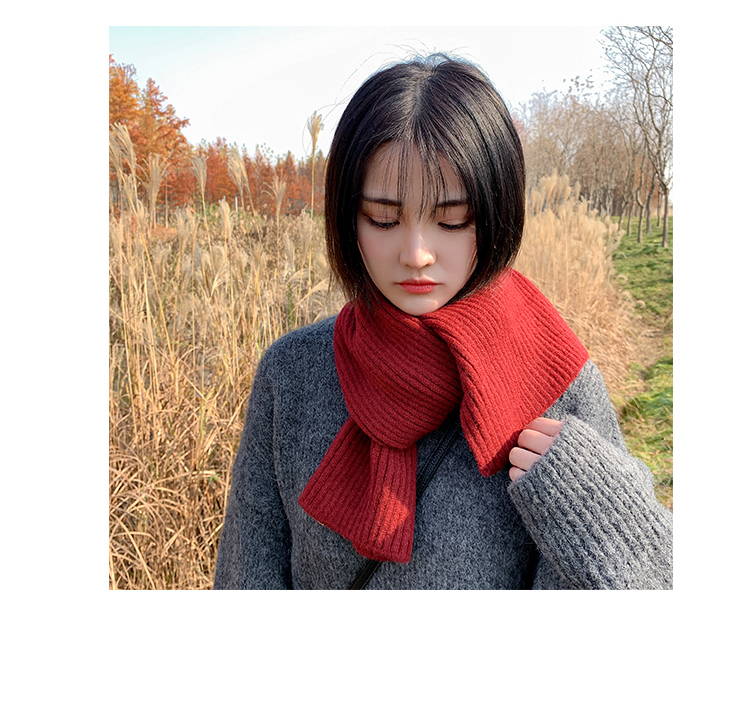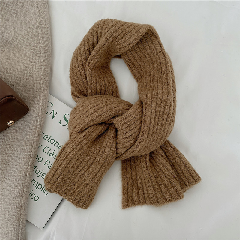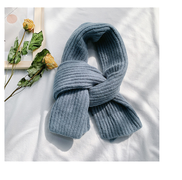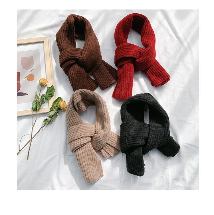 짧은 일본식 작은 스카프 여성용 겨울 따뜻한 단색 모직 니트 스카프 학생용 한국 스타일 남성 커플